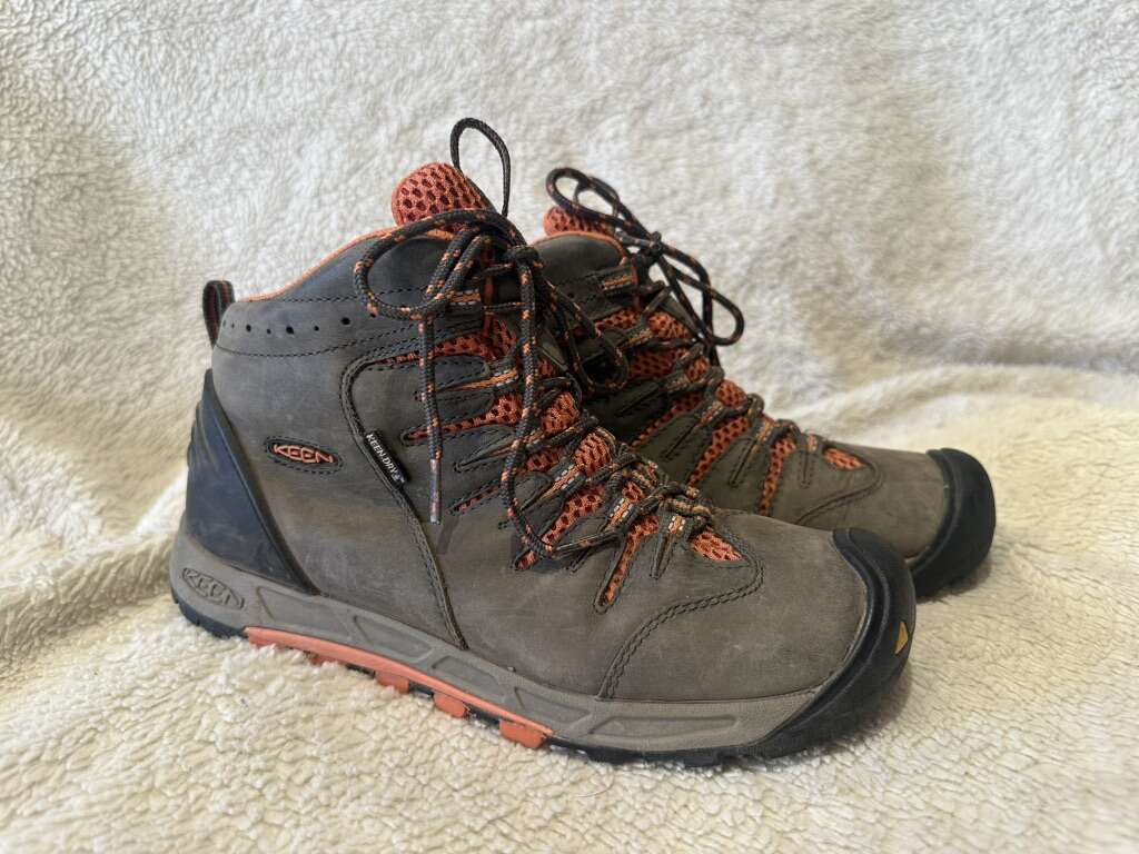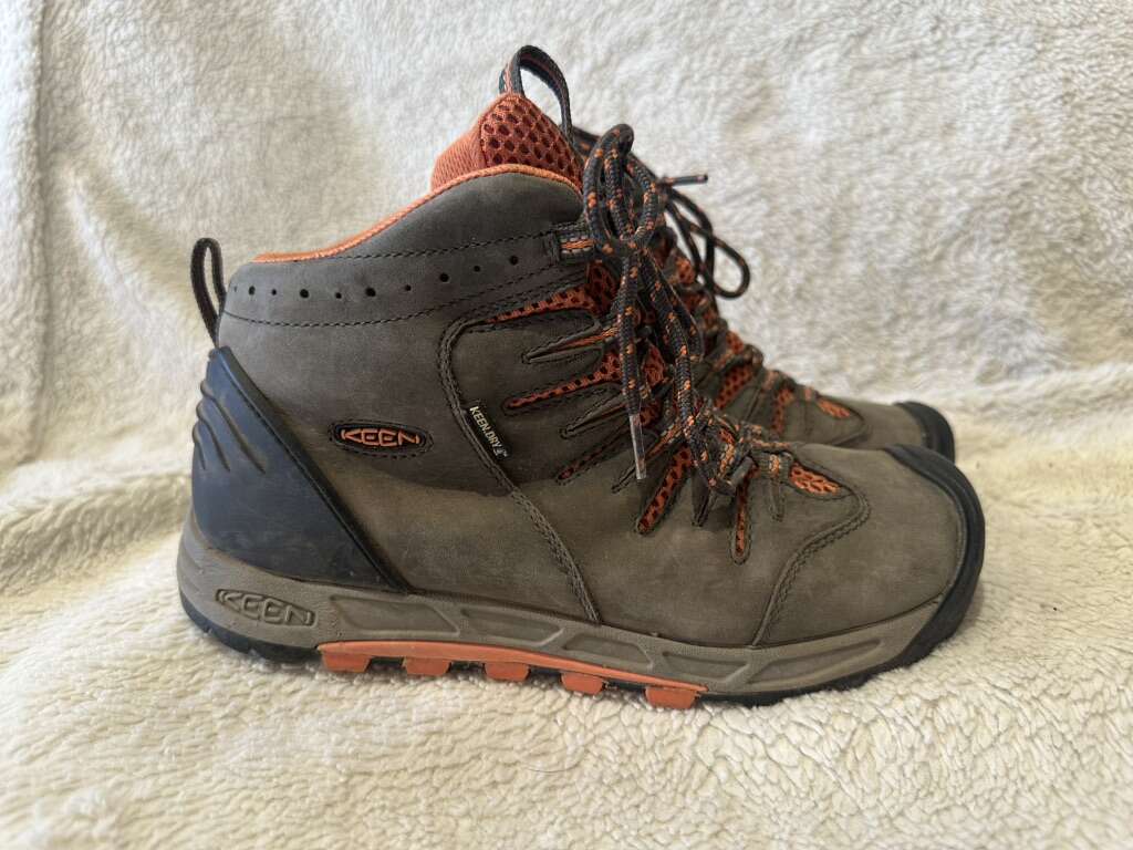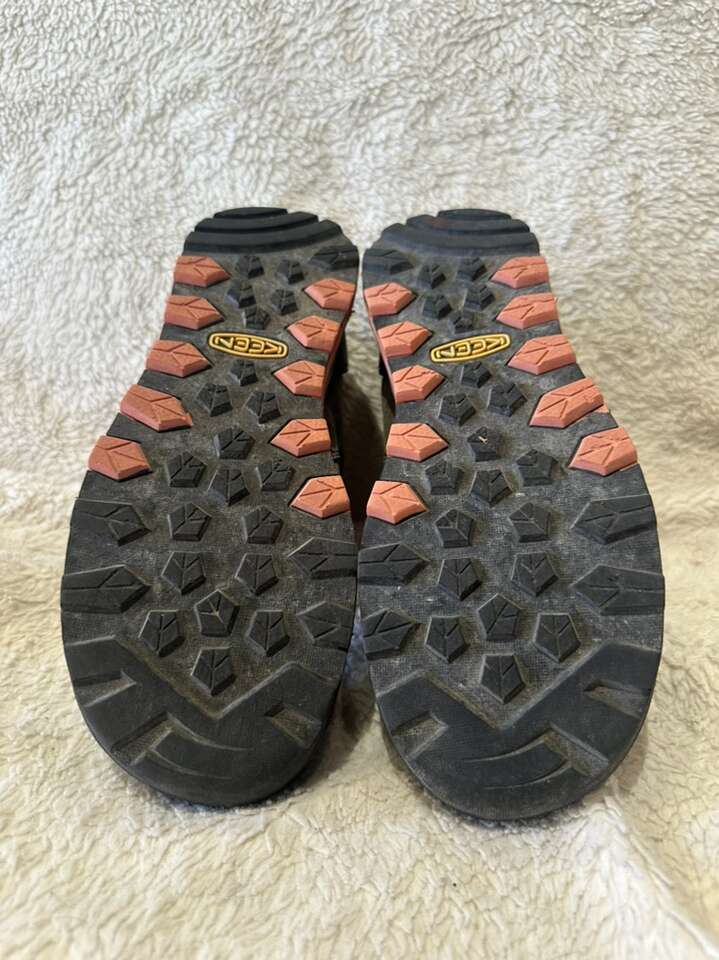 Keen women’s size 7.5 gray with peach trim waterproof hiking boots. These are leather and mesh and lace up the front. They are in excellent condition, see photos for details. I take cash or Venmo, but cash is preferred. Text is best. 801-201-4446. Check out my other ads for additional sizes and styles.