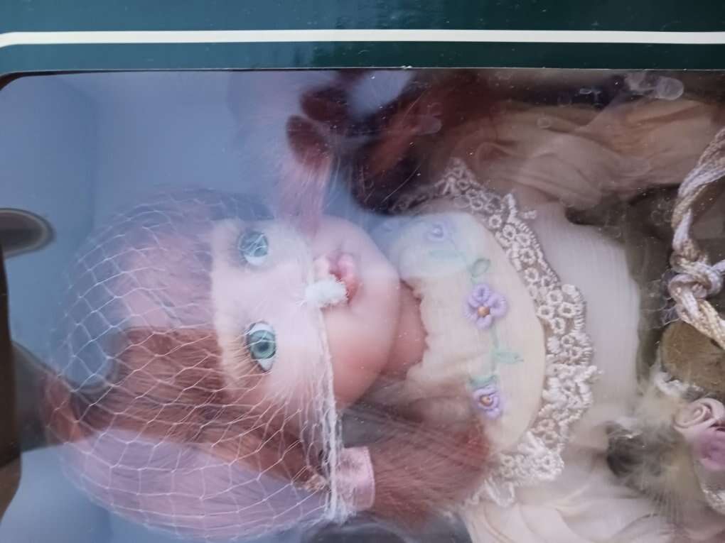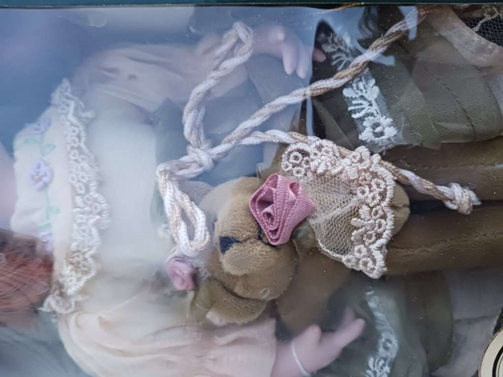 Porcelian doll with teddy bear. Never been opened. $10. Cash only. Smoke free and pet free home. Meet in the Logan area.
