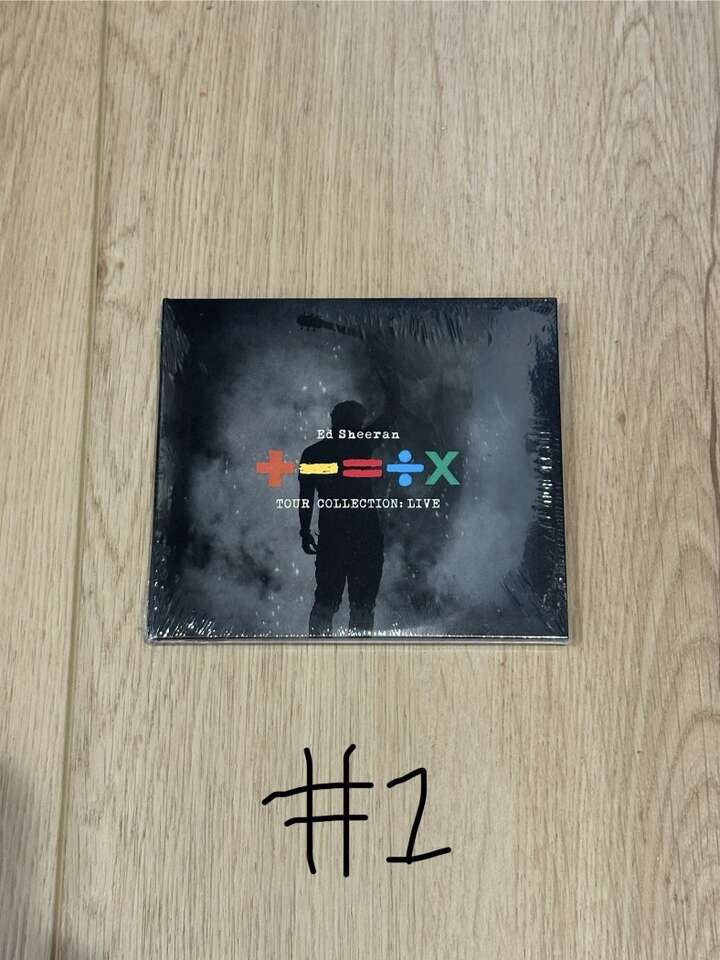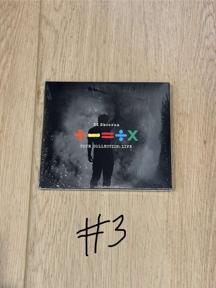 +-=÷× (TOUR COLLECTION: LIVE) Available on Limited Edition 2CD. Includes a set of three postcards featuring tour inspired imagery. The CD is brand new and still sealed. As you can see, I have 3 of these for sale and so if you purchase, let me know which one you want 1, 2, or 3. They are numbered in the pictures and so you can see the condition of each one. This album contains studio and live versions of some of the biggest songs of Ed’s career to date.