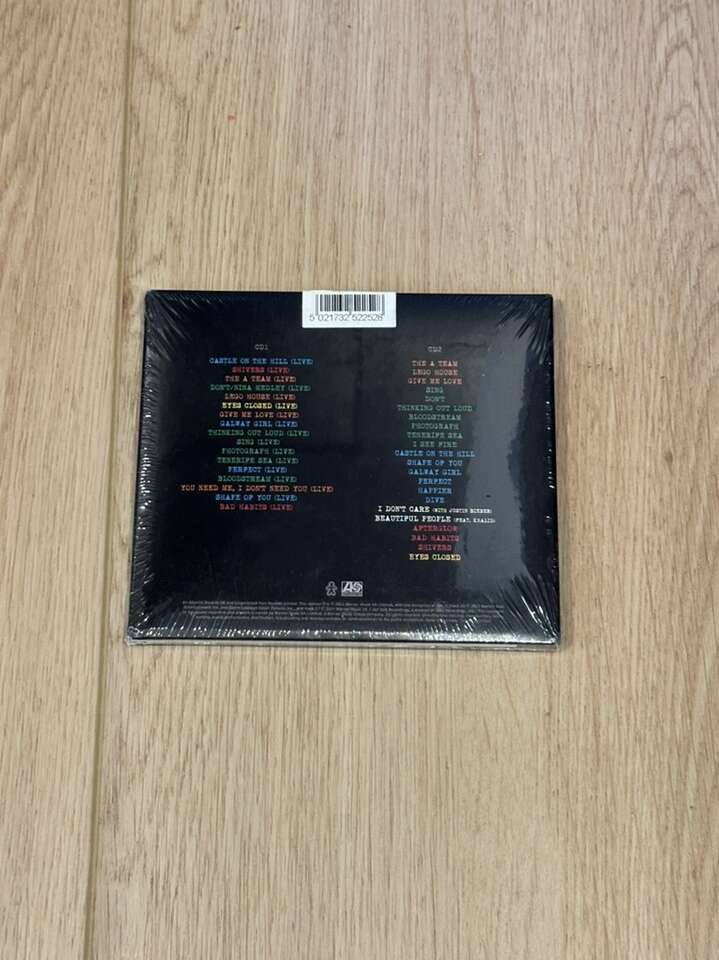 CD Disc 1 [Live] Castle On The Hill (Live) Shivers (Live) The A Team (Live) Don’t/Nina Medley (Live) Lego House (Live) Eyes Closed (Live) Give Me Love (Live) Galway Girl (Live) Thinking out Loud (Live) Sing (Live) Photograph (Live) Tenerife Sea (Live) Perfect (Live) Bloodstream (Live) You Need Me, I Don’t Need You (Live) Shape Of You (Live) Bad Habits (Live) Disc 2 [Studio]: The A Team Lego House Give Me Love Sing Don’t Thinking out Loud Bloodstream Photograph Tenerife Sea I See Fire Castle On The Hill Shape Of You Galway Girl Perfect Happier Dive I Don’t Care Beautiful People Afterglow Bad Habits Shivers Eyes Closed