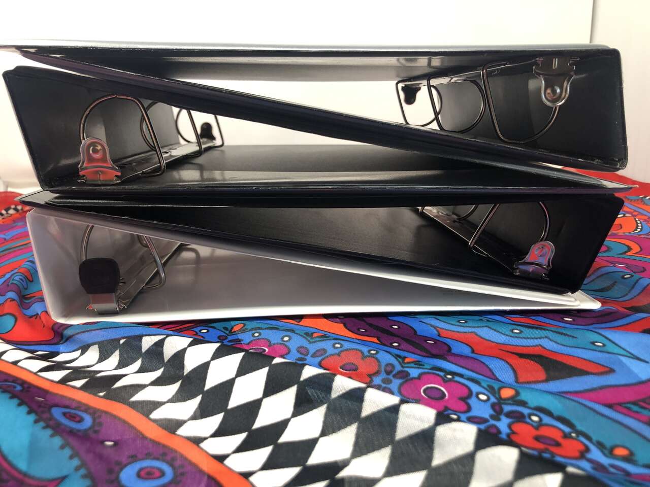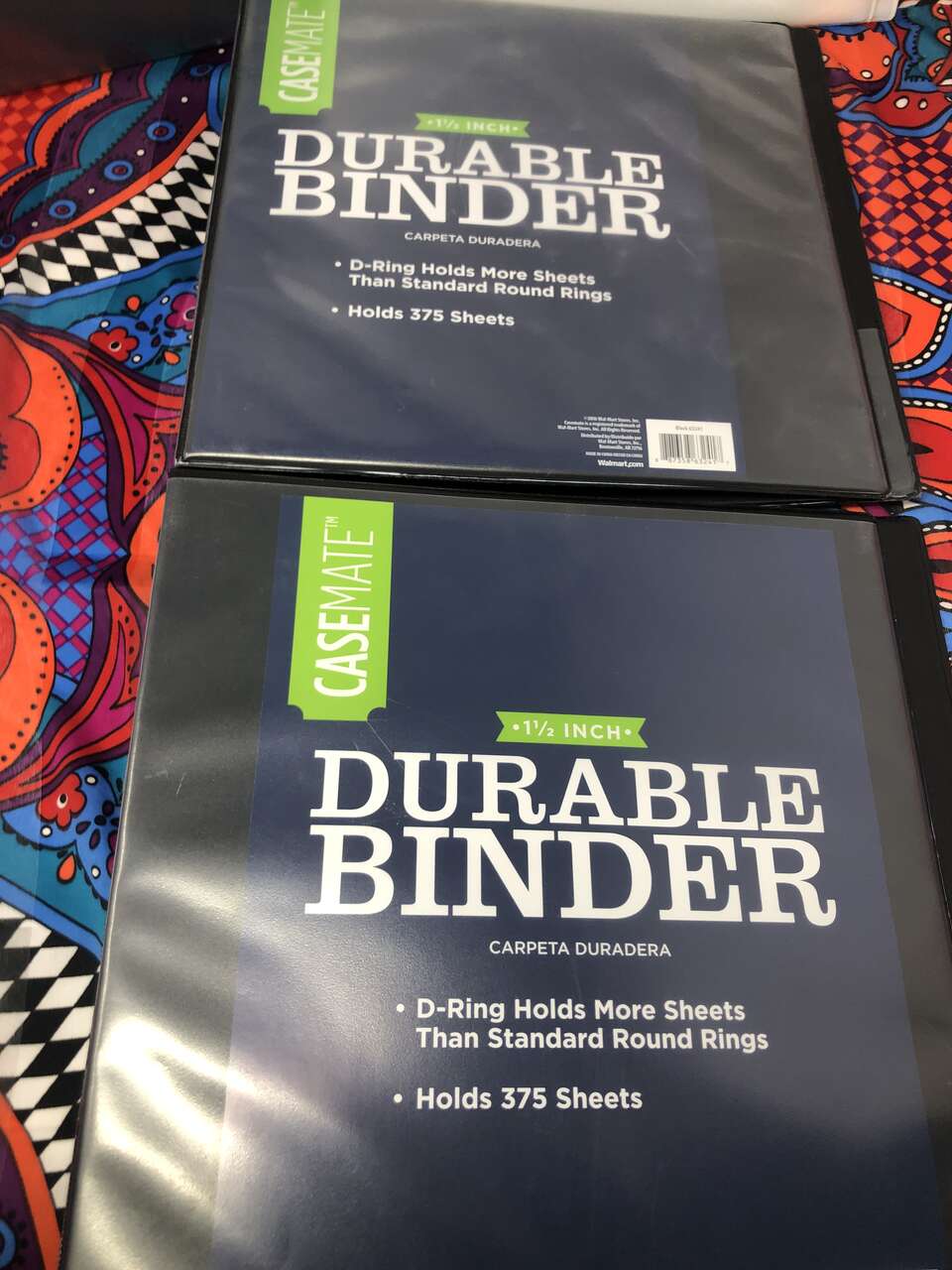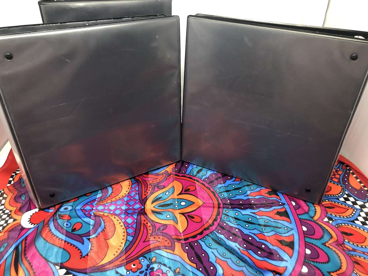 There are 2 Casemate binders and another unbranded black binder that each have 2 pockets and clear-view customizable outsides.