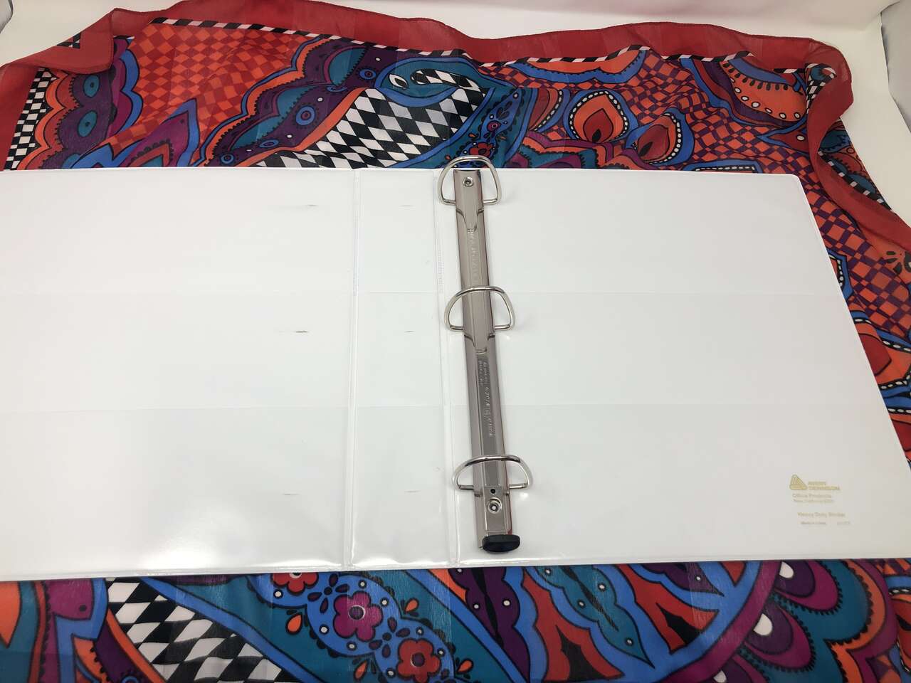 Then we have a white Avery Dennison binder with the EZ comfort open and close, 4 inner pockets, and the clear-view customizable outside as well.