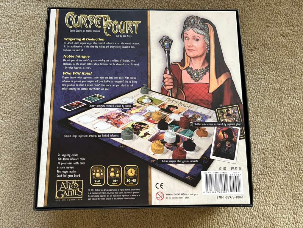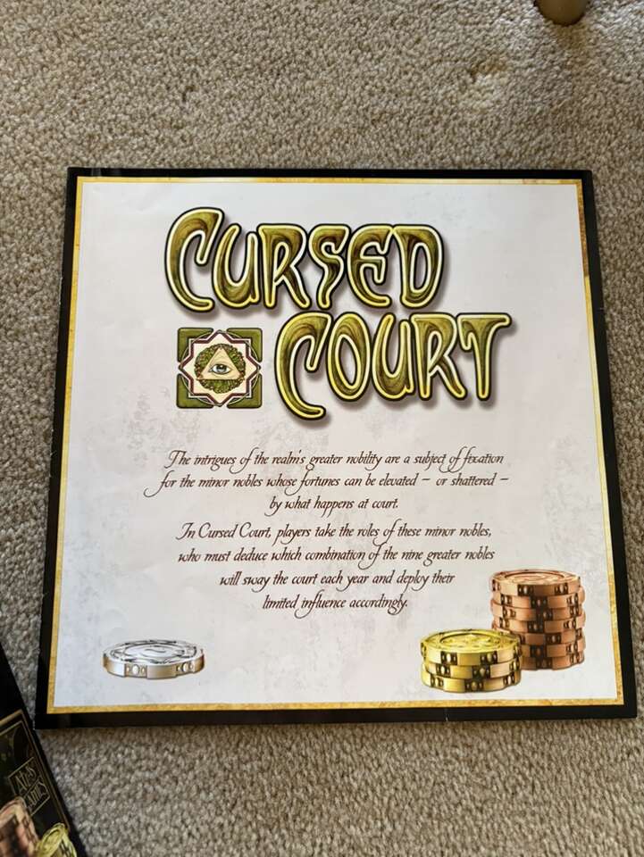 COMPLETE Cursed Court Game. 2-6 players, ages 14+. By Andrew Hanson, Atlas Games, 2017. Complete, no missing pieces. High-quality game. Excellent condition. Text only. Cash or Venmo.