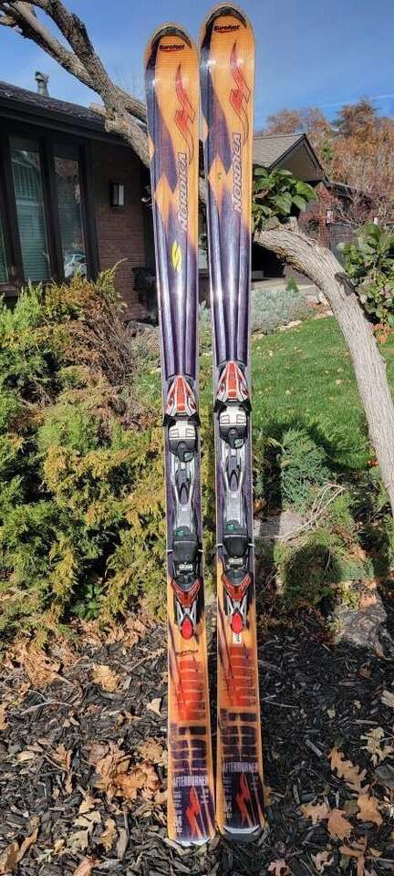 NORDICA HOTROD AFTERBURNER SKIES W/MARKER TWIN CAM BINDINGS GREAT SKI VVG. CONDITION:)YOU'LL LOVE THEM!️ REAL FUN SKI TO SCHRED WITH 186cm.