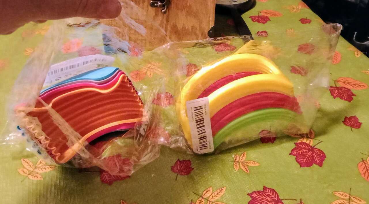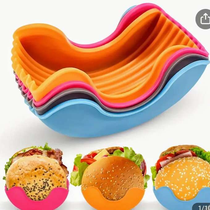 The 4pc silicone hamburger holders and the 12pc taco stand holders have NEVER been used, still BRAND NEW.