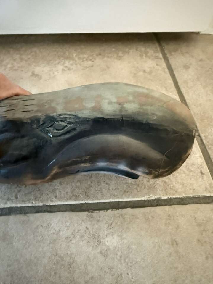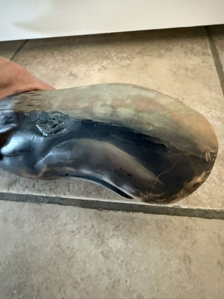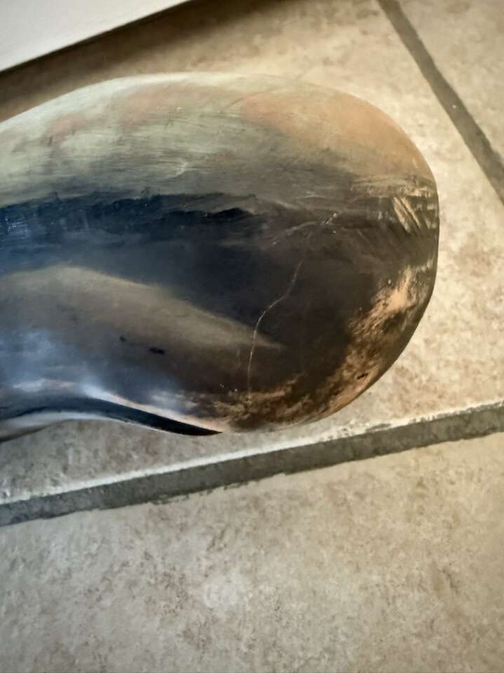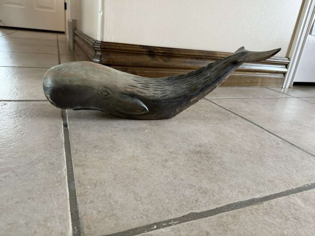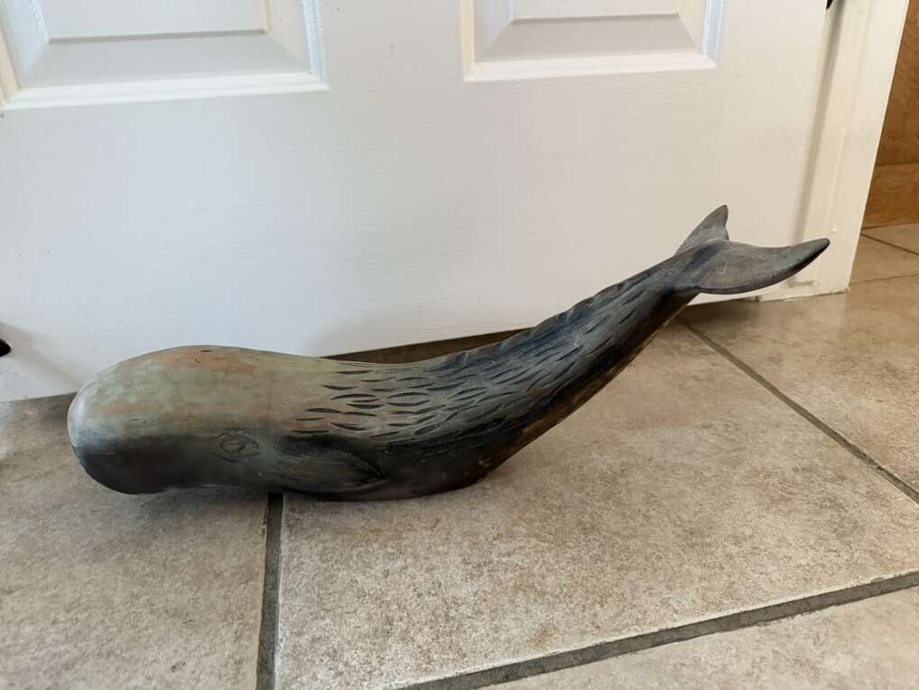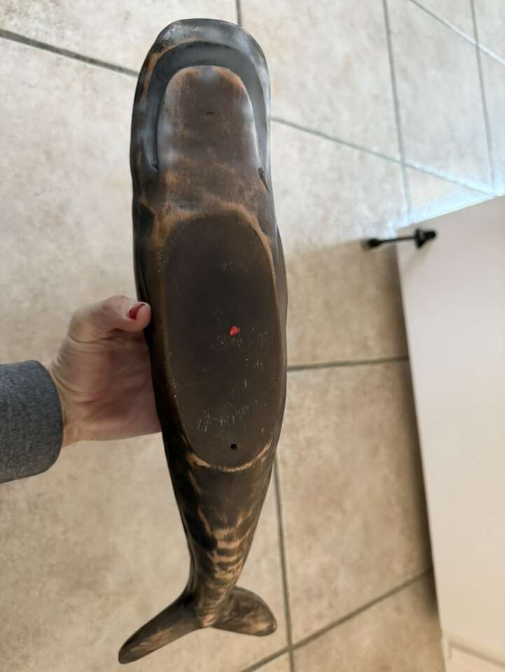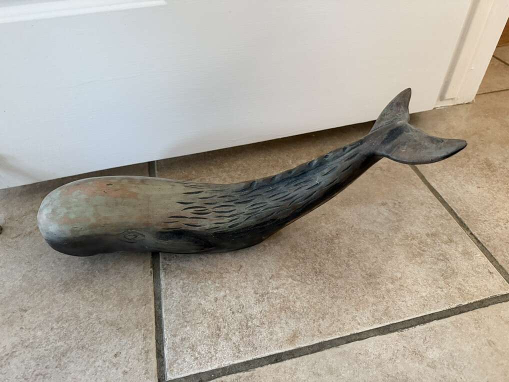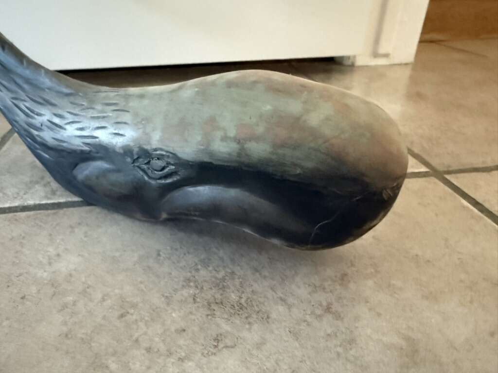Vintage large gray whale decoration 20” long 7” tall has a small crack in front