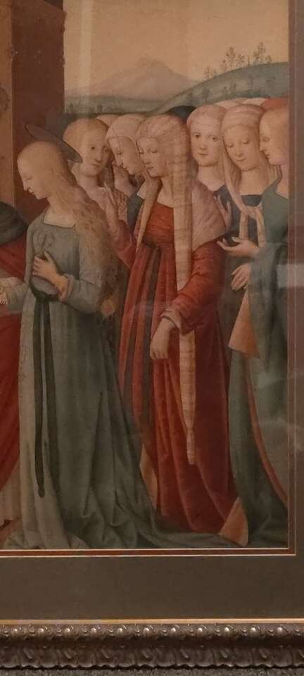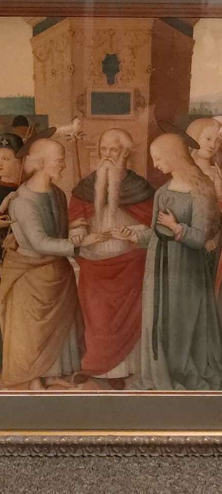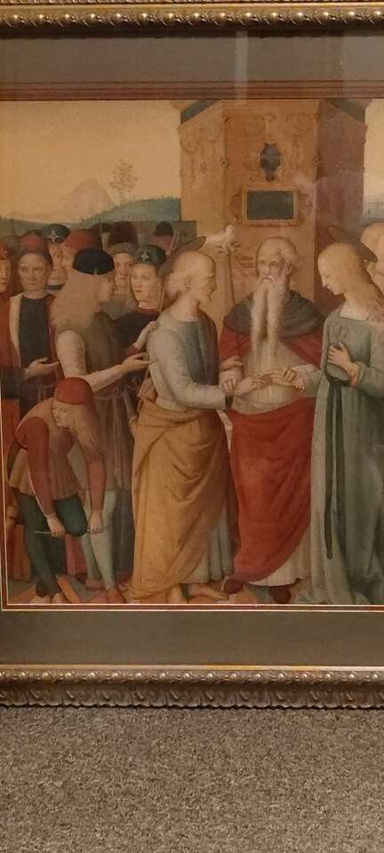 Really Beautiful Is This Very Unique Italian Water Colored Copy After The Painting.Titled Marriage Of The Virgin By Perugino. (Italy) And Is Approximately 32"wide x 31"tall And Is Very Stunning To look At.