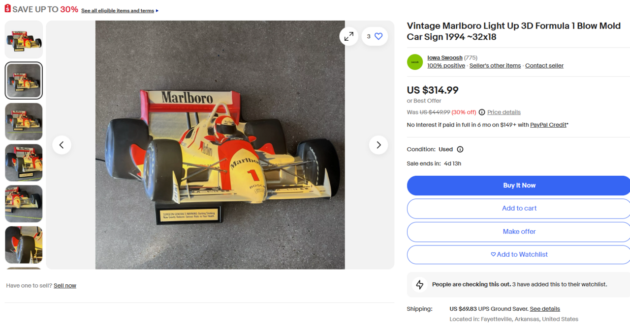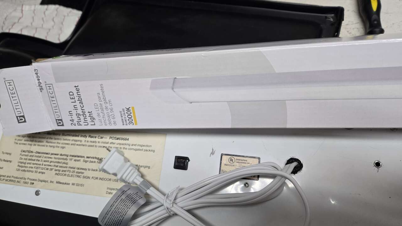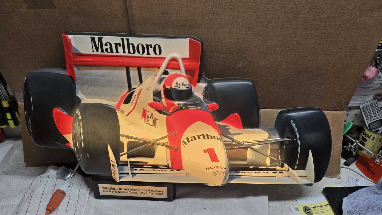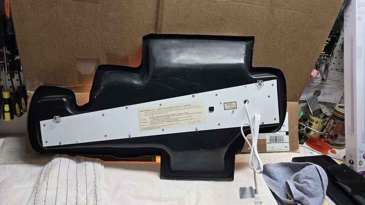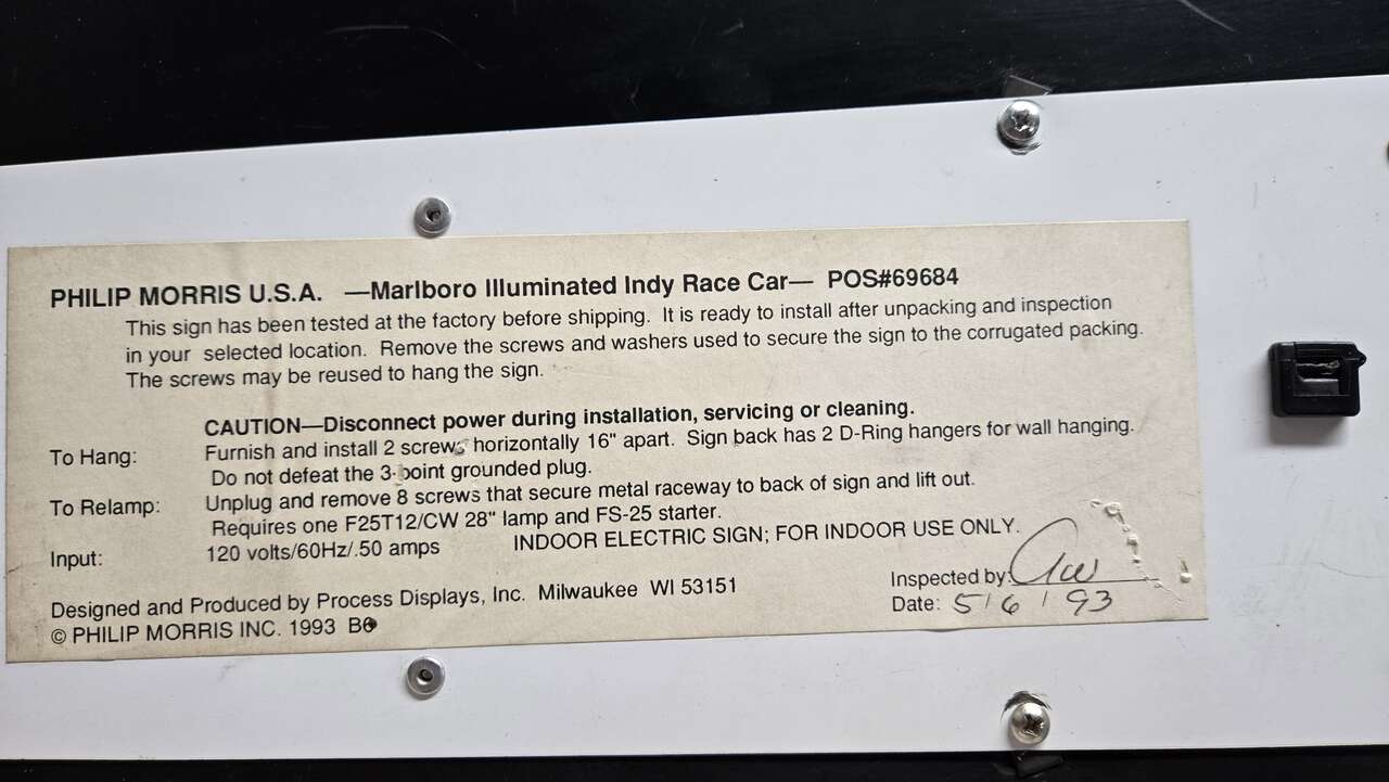 Vintage, Excellent condition, Marlboro Indy Car, Lighted Sign. NEW 24" in. LED Light Bar Installed. Super bright with beautiful lighted white glow. With its vintage design and high-quality construction, this sign is perfect for adding nostalgia to any collection, display, man cave or office. The sign features the iconic Marlboro logo and is made in the United States. Very light wear. Excellent condition for 32 years old. The new light bar/LED Lights have been installed and are 100% better quality lighting for long lasting use VS old, original, expensive to replace, flourecent bulb. This sign is in pristine condition for 32 years old. You will not find this sign in better condition anywhere unless it is advertised as NEW. $$$$$$$