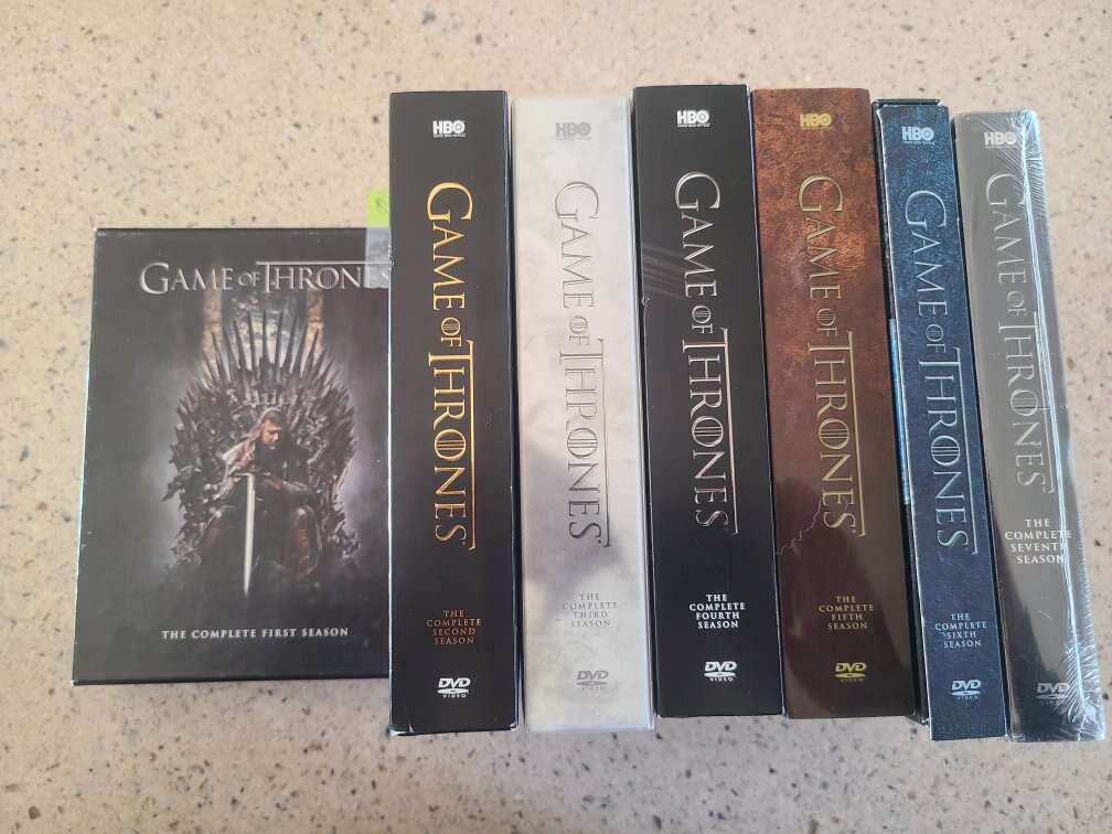 Game of thrones season 1-7 $60 Game of thrones season 7 with extras DVD $15 Country music collection $40 Barney Miller collection $25 Natalie wood collection $15 Angels in America series $10 Falling sky series $30 China Beach 1-4 $40 Shaka Zulu $12 Roger's Hammerstein collection $25 Cary grant collection $25 Audrey Hepburn collection $15 Sons of Anarchy complete $50 Roots $15 All in the family series $30 Outlander series $15 Welcome back Kotter $20 Borgias season 1 and 2 $15 Downtown abbey $10 Lost complete $50 Criminal minds season 1-13 $60 NCIS season 1-14 $65 Century of warfare $20