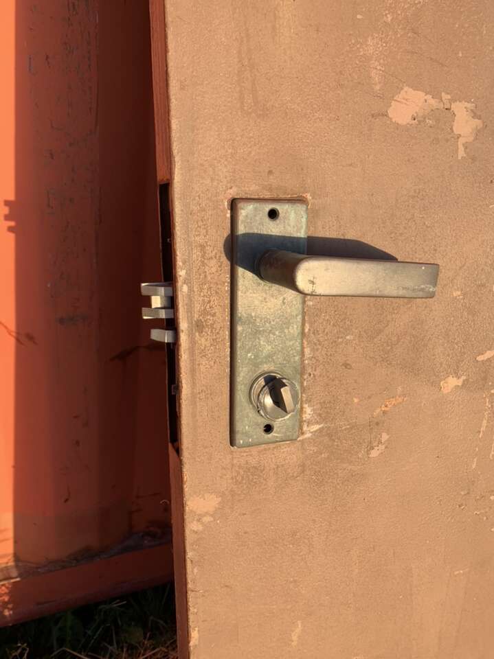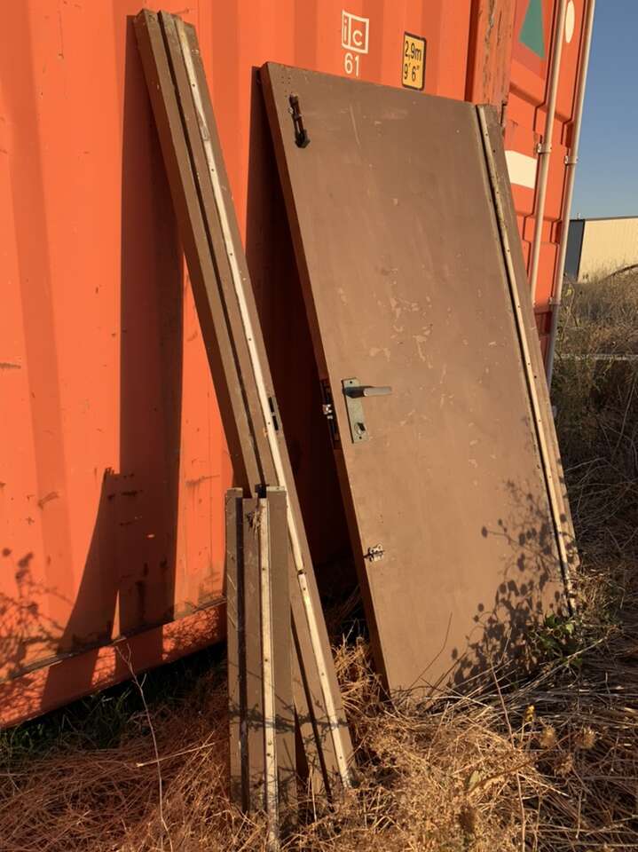 ApplePaySteel exterior security door. This came out of a school. Door has brass hardware and 3 pieces of the frame. Measures 36” x 80”. Yes, the door was upside down when pics were taken - sorry. Locking mechanism will need some work. In Corinne near Brigham City.