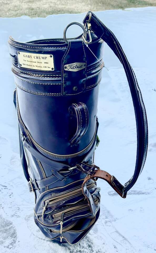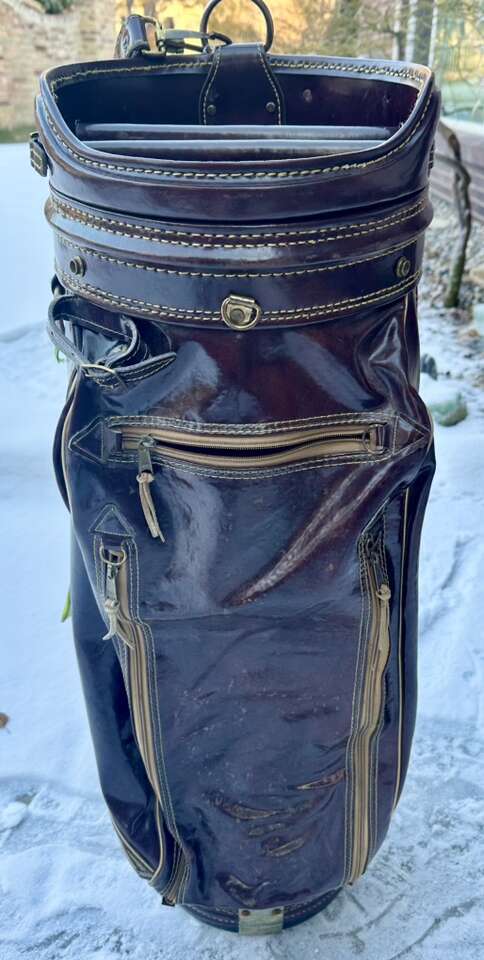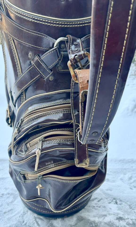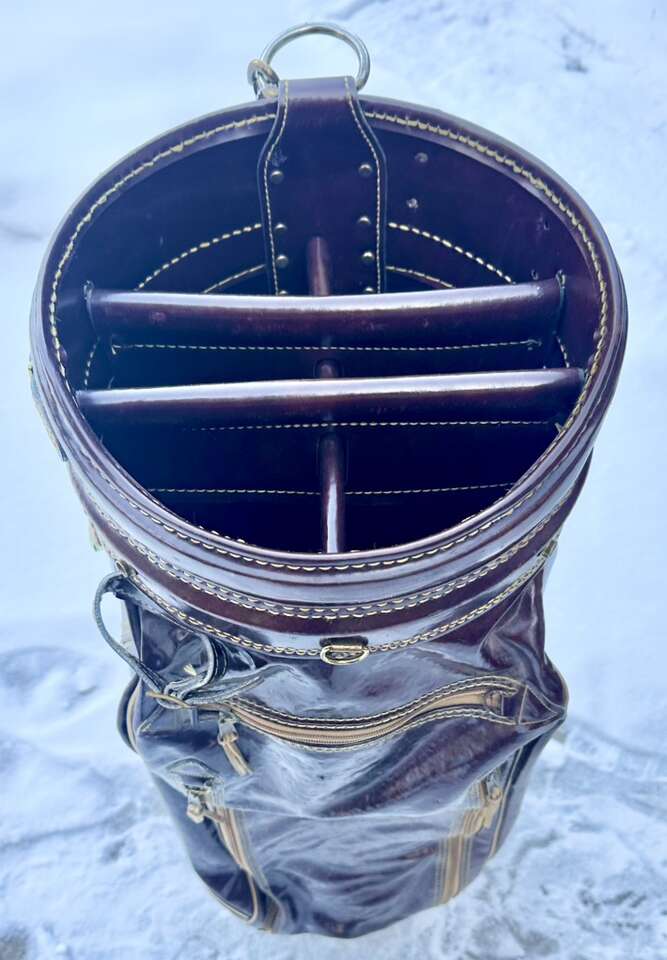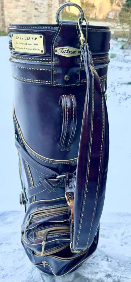 VenmoTitleist vintage men's large rich brown all genuine leather cart bag for sale. Extraordinary bag in very good condition. Complete with matching rain cover. Nameplate can easily be removed if wanted/needed. See photos. Call or text with questions.