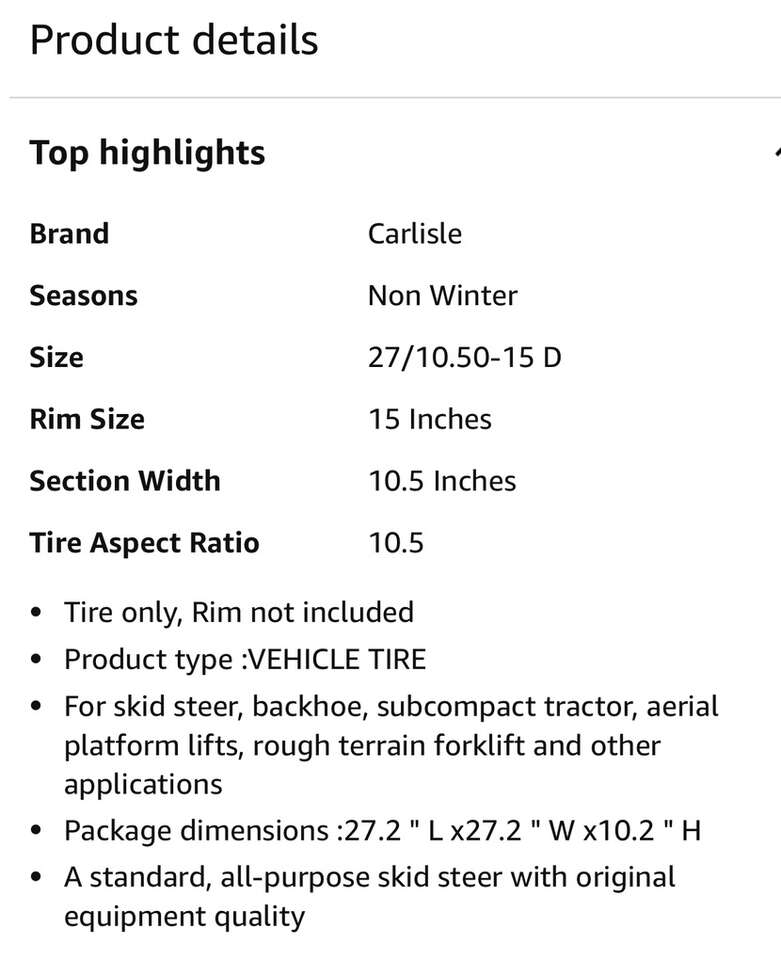 Description- (SET OF 4) TRAC-CHIEF 27X10.50-15 tubeless 8-ply skid steer/equipment tires. See photos for more product information and specifications.