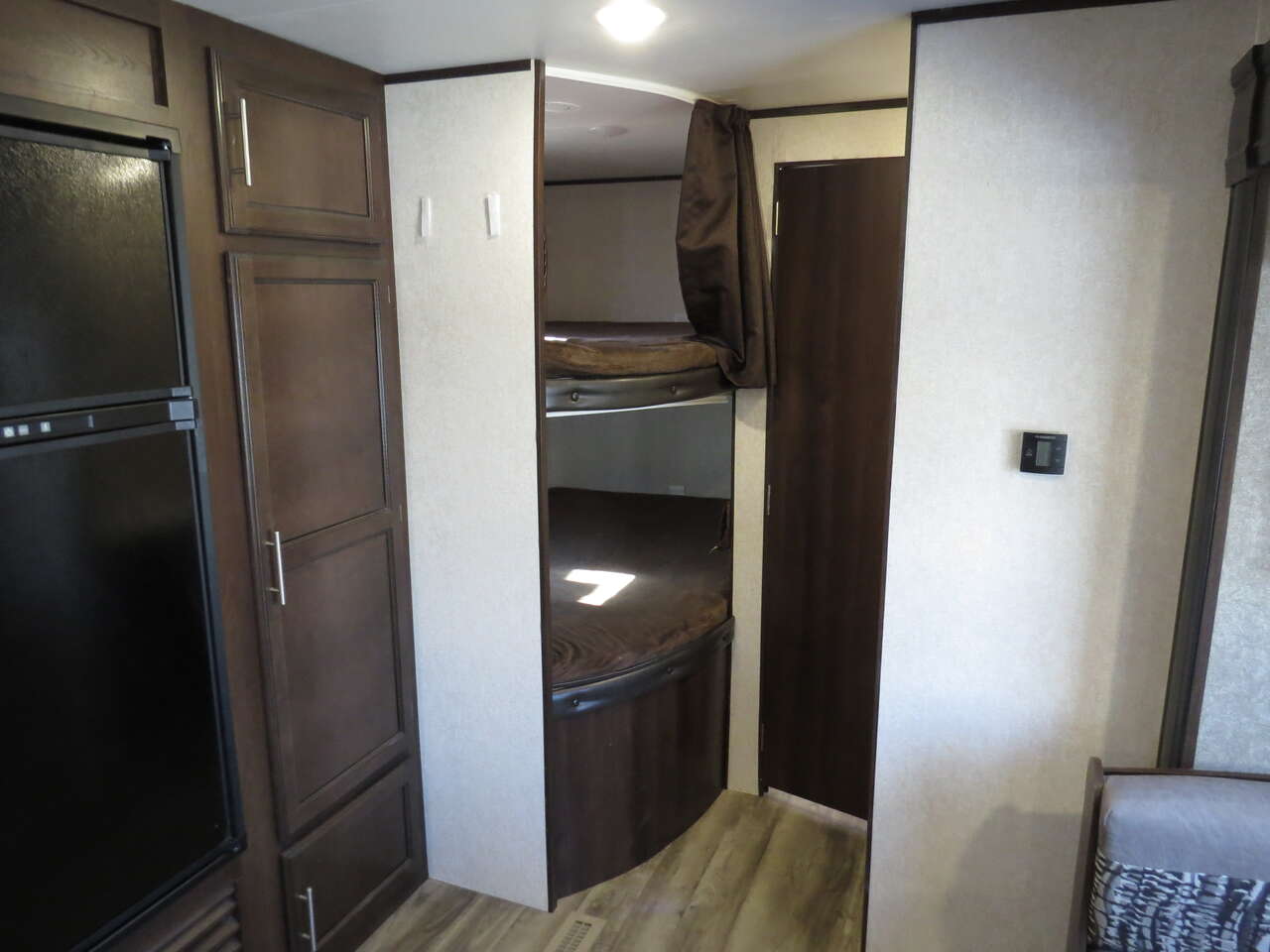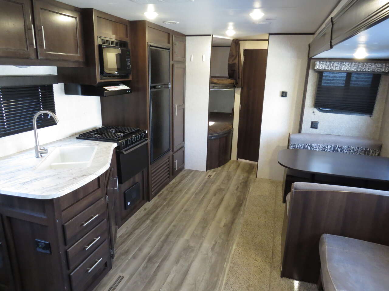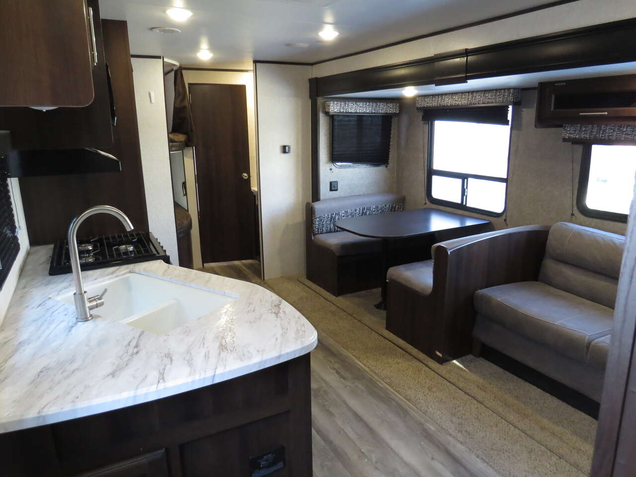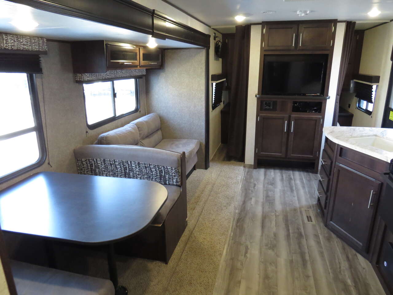 2 Big Rear Bunks, Booth Dinette & Couch Slide, Front Queen bed!, Lots of storage! Side Kitchen, Corner Bathroom, Couch & Booth Dinette Makes down to bed, A/C unit and Heat.