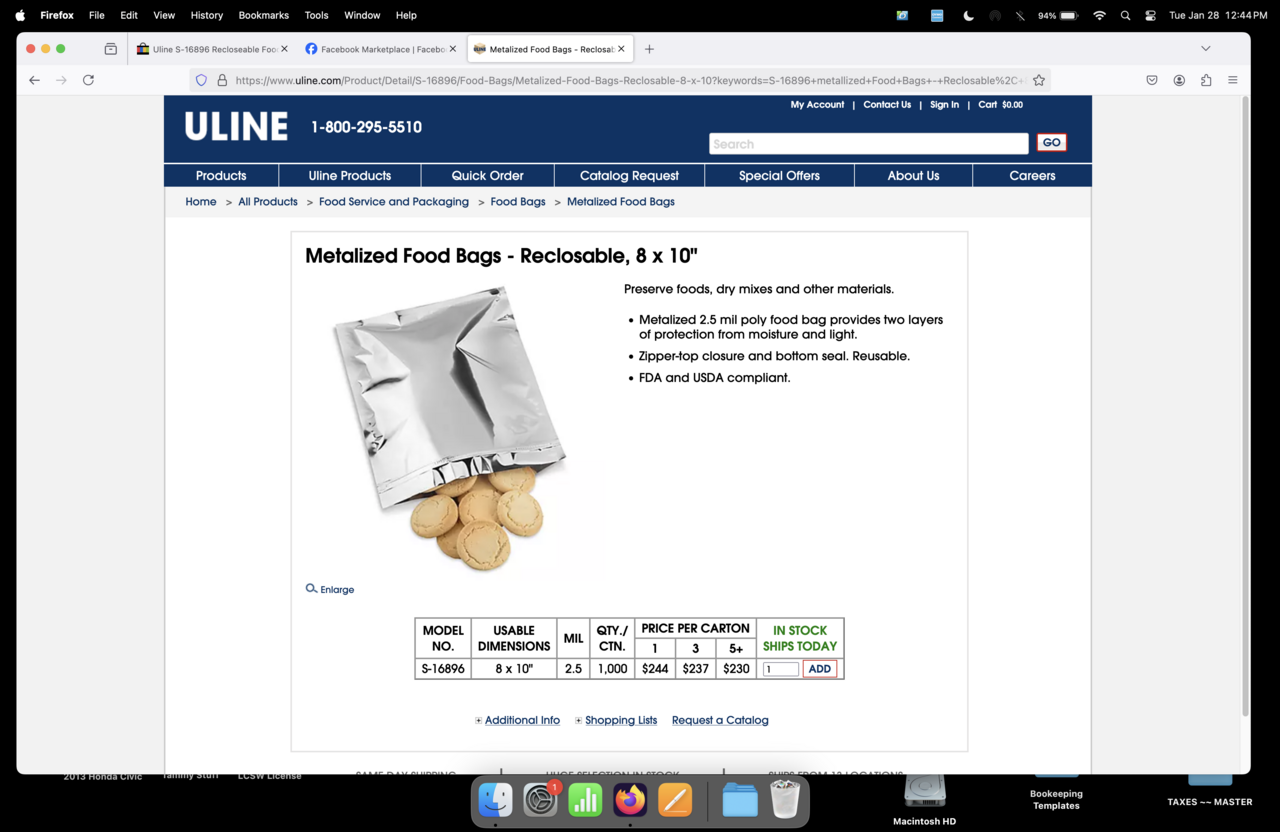 ULINE S-16896 ~ 8x10 inch ~ Recloseable ~ Metallic Food Bags. Please see photos for further detail on items specs. Selling in lots of 50 count. I have multiple lots.