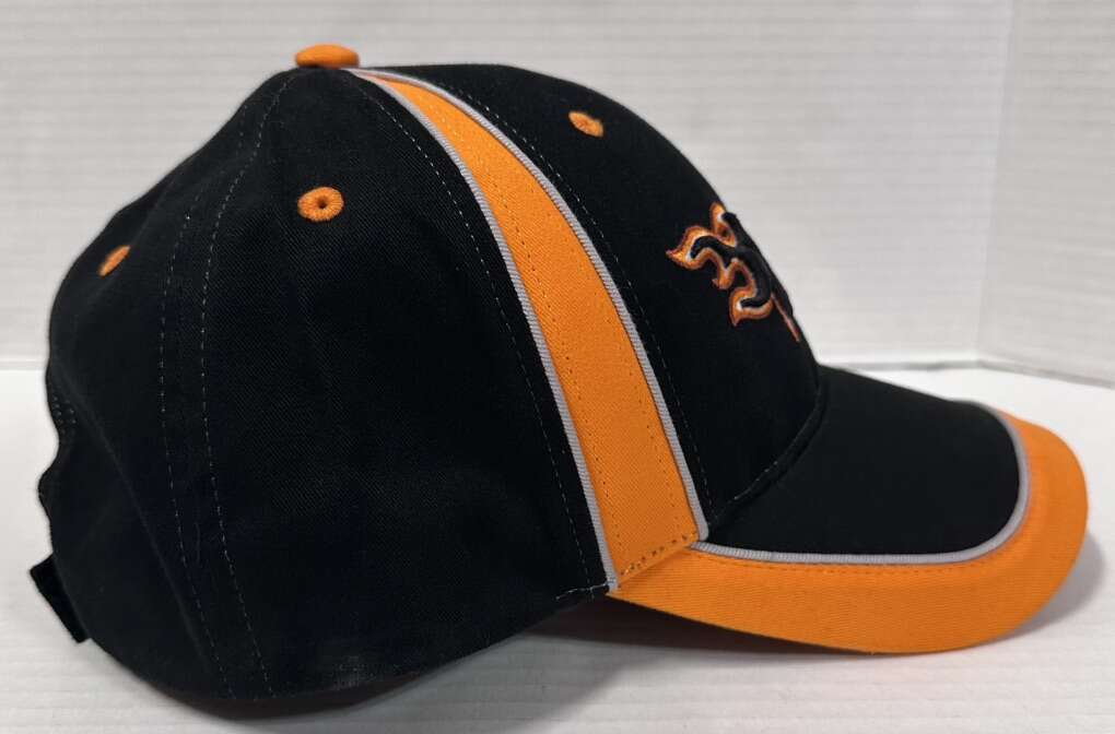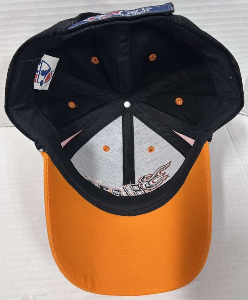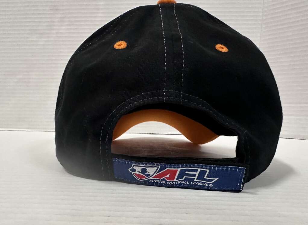 The Vintage Utah Blaze AFL Adjustable Hat is an officially licensed football cap featuring the colors orange and black. This one-size hat is designed for adult fans of the Utah Blaze team from the Arena Football League (AFL). The unisex design makes it suitable for both men and women who want to show their support for the team in a retro style.