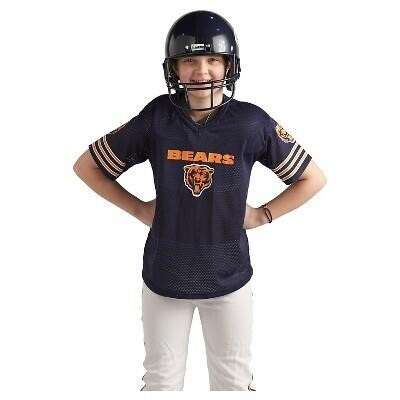 Hit the gridiron in the NFL Chicago Bears Helmet and Uniform Set. This 6-pc set lets your little athlete suit up just like their football heroes. The jersey is made of durable and breathable 100% polyester. Short sleeves keep kids cool. The activewear pants are also made of sturdy 100% polyester. The pull-on pants have a full elastic waistband for total comfort.
