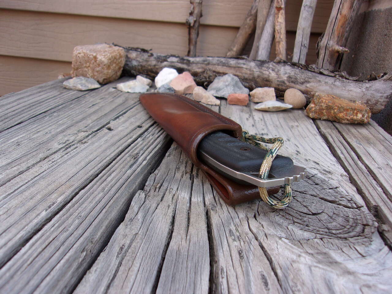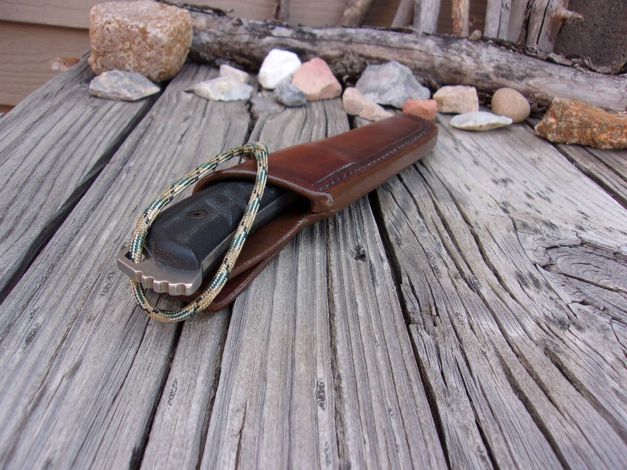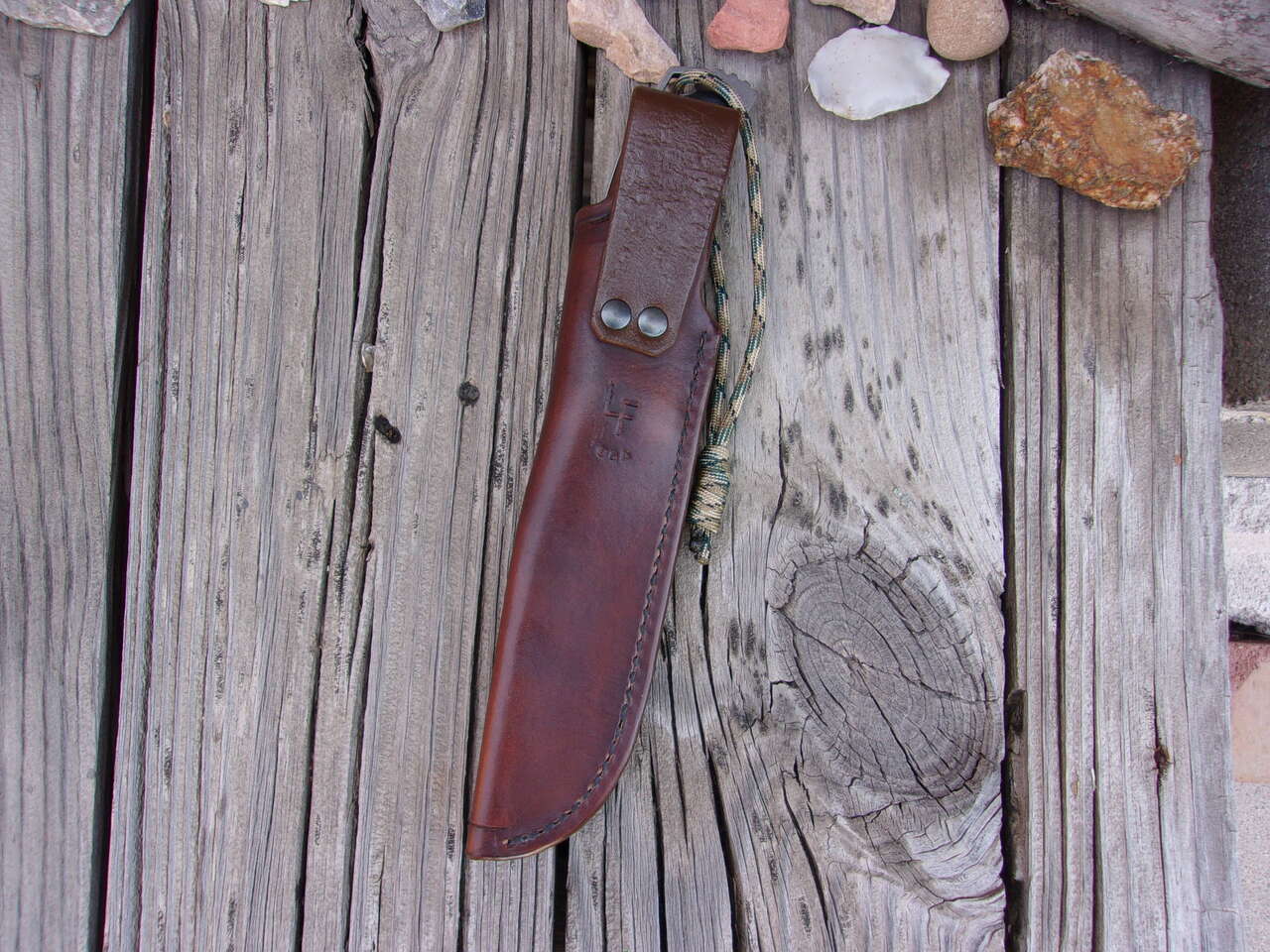 All sheaths are treated with an application of Sno-Seal Original Beeswax Waterproofing for protection from rain, sun, snow, and salt giving the sheath a very nice patina.