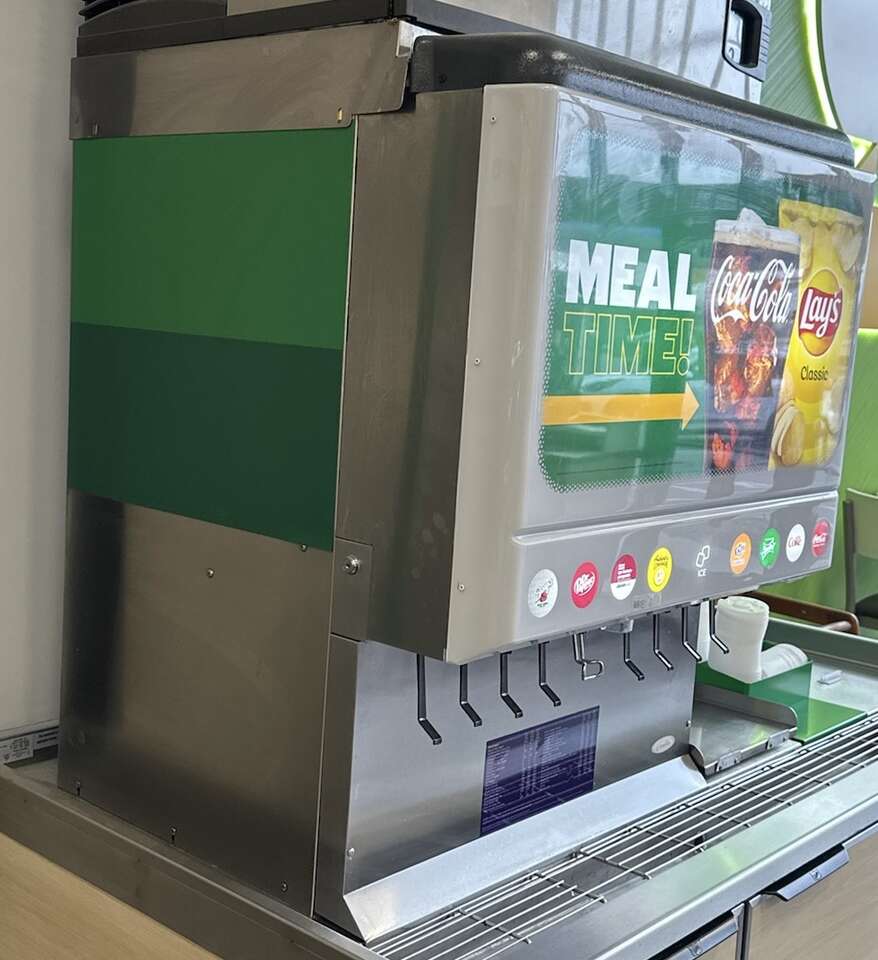 30”x30”x30”. 115V. In working condition. Already removed and ready to pick up. I have a few of these if you’re interested in purchasing more than one. Includes: Soda fountain 8 syrup pumps 1 CO2 multi regulator 1 carbonaotr unit 1 CO2 tank regulator