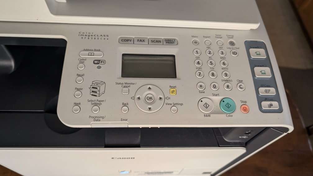 In great shape. fully functional. Has non-Canon toner so it's not as dark as it would be with OEM toner. See pics of prints