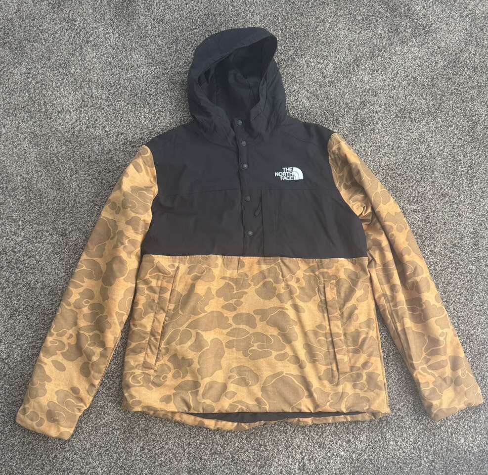 The North Face Men’s Fallback Hoodie Jacket Insulated Camo/Black NWT Fallback Hoodie -Brand new never worn, no need for it. -Retail price $189.00 -PrimaLoft black insulation -Reversible (wear it 2 ways) -Manufacturer color: Timber Tan Tonal Duck Camo Print/Tnf Black -Insulated pullover built for daily adventures and activities -Durable nylon outer with DWR fights off light precipitation -Stretchy insulation moves with you while warming -Fixed hood traps extra heat and blocks out driving wind 1/4 Snap Button -Zip chest pocket -Elastic cuffs trap extra heat while also keeping arms in place -Hand pockets keep digits warm and small items nearby -Toss The North Face Fallback Hoodie jacket on under your favorite shell before a day of shredding, or pull it on over your trusty t-shirt for a casual trip to the trail head for some added shelter and warmth. -The DWR treated outer has you covered if a light rain rolls into town, while the PrimaLoft Black insulation will maintain its loft to keep your warm and happy even when wet.