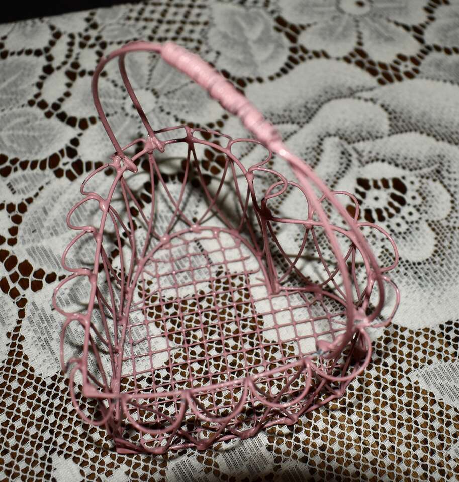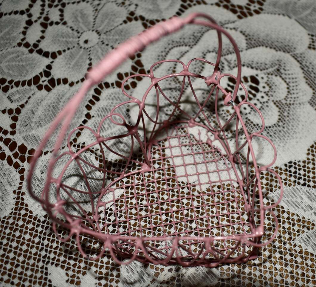**IT MEASURES…**Approx. 5 1/2 inches tall from the top of the basket to the bottom of the basket and approx. 4 1/4 inches measured at the center of the heart front to back and approx. 4 1/2 inches measured from side to side at the center area of the basket. The inside area measures approx. 2 1/4 inches tall.