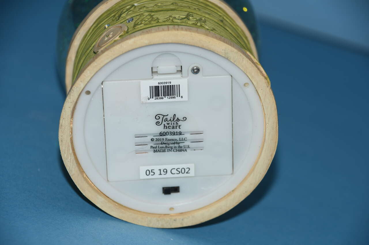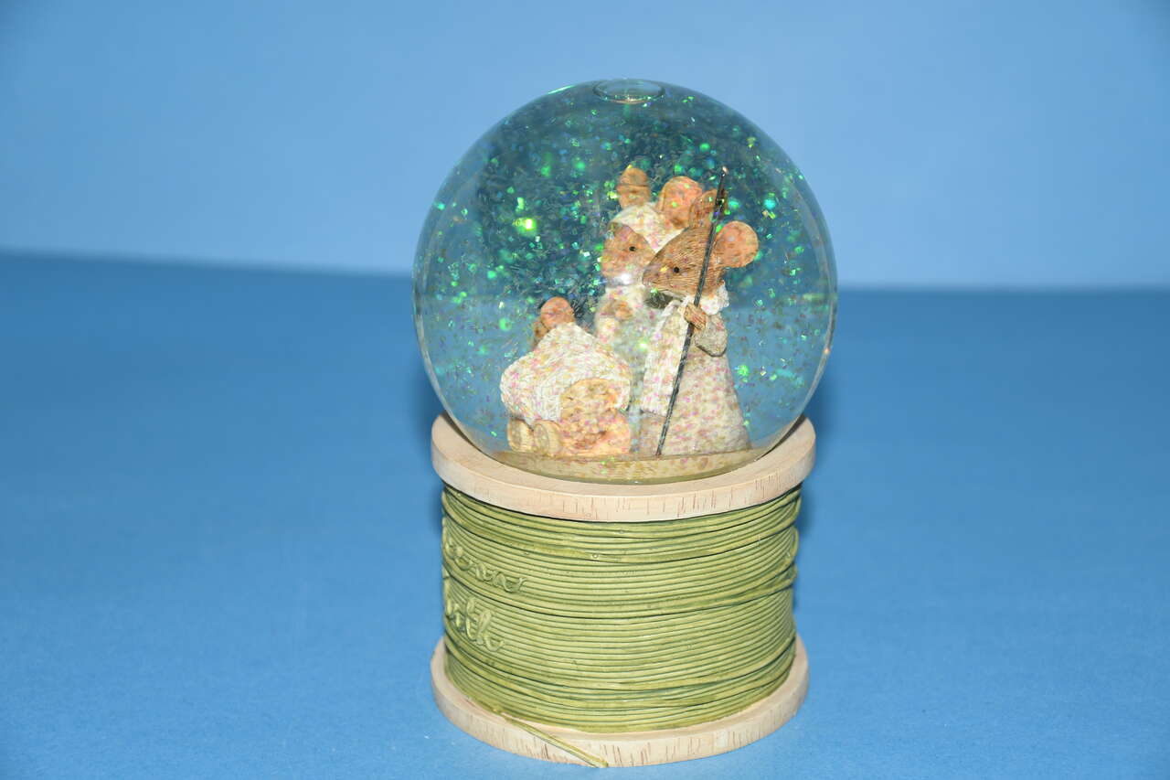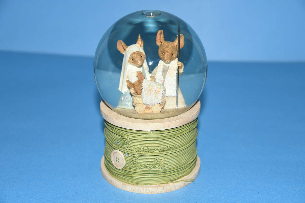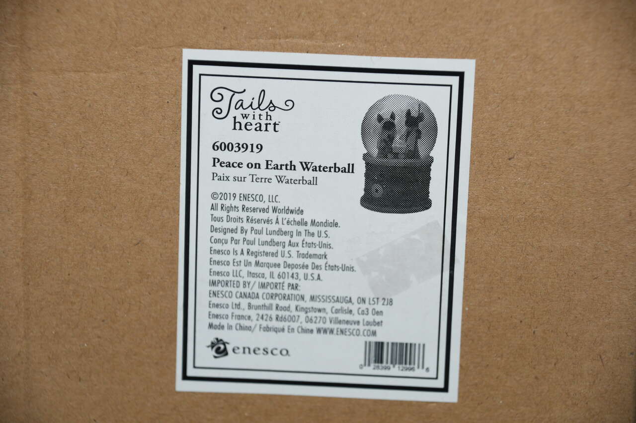 This CUTE ENESCO "PEACE ON EARTH" NATIVITY WATER BALL is about 6" in height. The tilte is "TAILS WITH HEART". It LIGHTS UP. Our home is smoke free. Questions??? Please ask. We are located in Plain City. Cash only please.