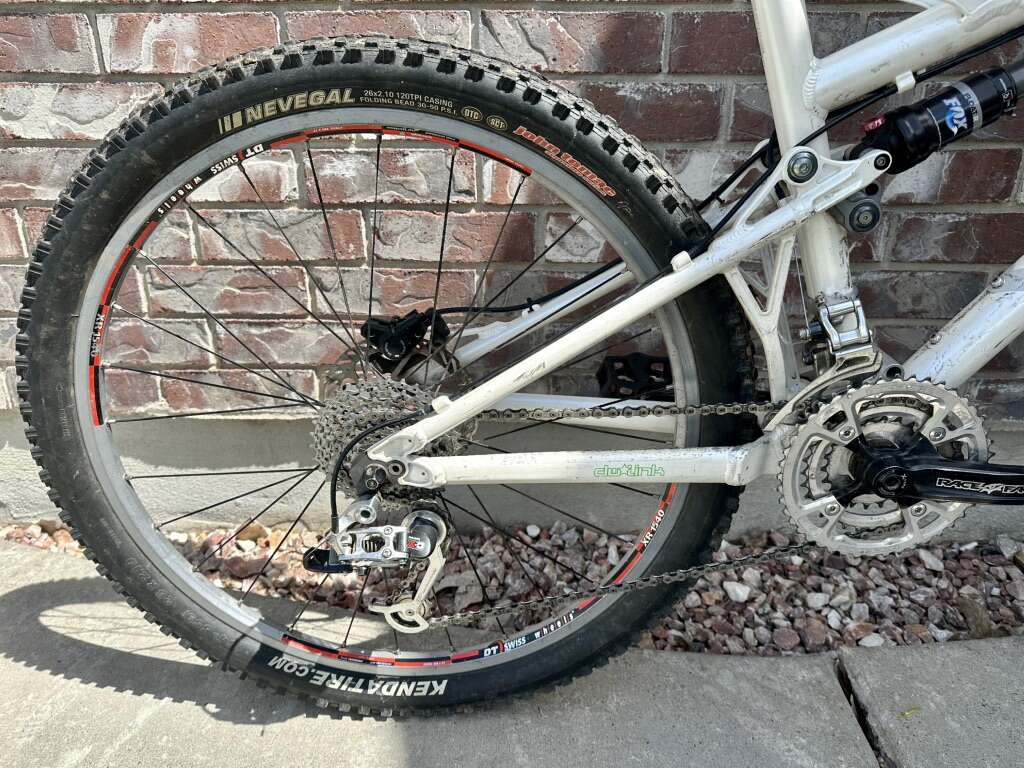 -SRAM X-O and X-9 shifting/drivetrain -Shimano hydraulic disk braking -RockShox Reba air fork -Fox Float R rear air shock -Race Face crankset -Flat Mtb pedals -DT Swiss wheels and hubs -690mm wide bars -FSA headset with carbon fiber spacers -Lock-on grips -Specialized saddle/seat and clamp