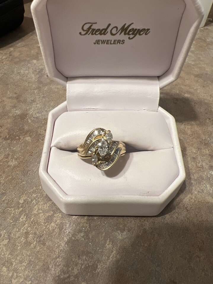 3 marquee diamonds with baguettes on the side I believe the size is six