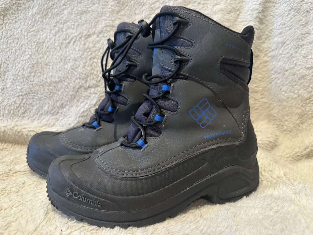 Columbia youth size 5 gray with blue trim and 200 g of insulation, waterproof lace up winter boots with elastic laces and a toggle at the top. They are in excellent condition, see photos for details. I take cash or Venmo, but cash is preferred. Text is best. 801-201-4446. Check out my other ads for additional sizes and styles.
