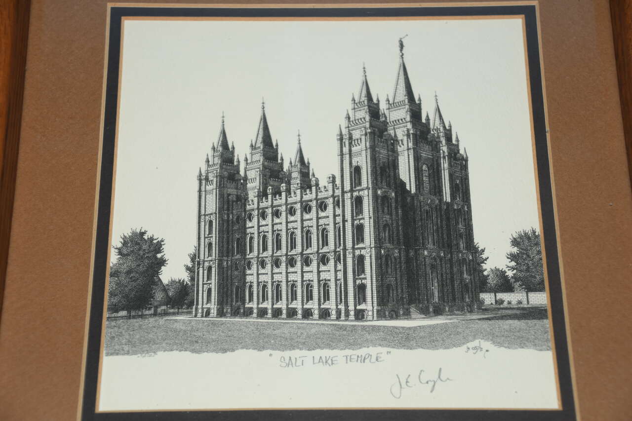 This SALT LAKE TEMPLE PICTURE is about 11" x 11" FRAMED. It is SIGNED. Our home is smoke free. Questions??? Please ask. We are located in Plain city. Cash only please.