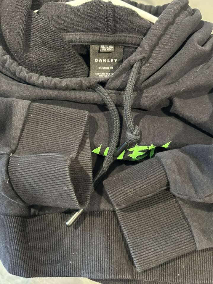 VenmoIn great condition mens XXL 2XL black Street Crew hoodie sweatshirt from Oakley. Bright light green screen print in the front. No flaws no holes no defects. Clean smoke free home. Cash or Venmo. Porch pickup from Alpine.