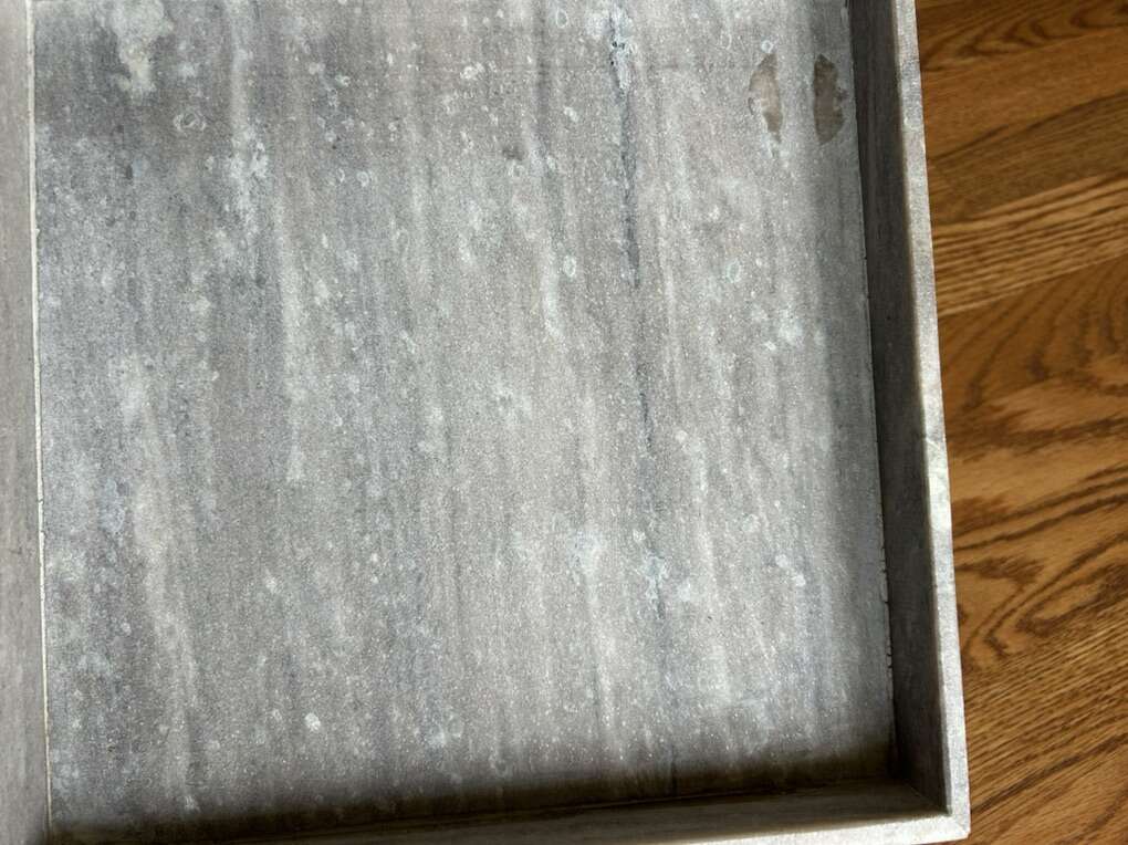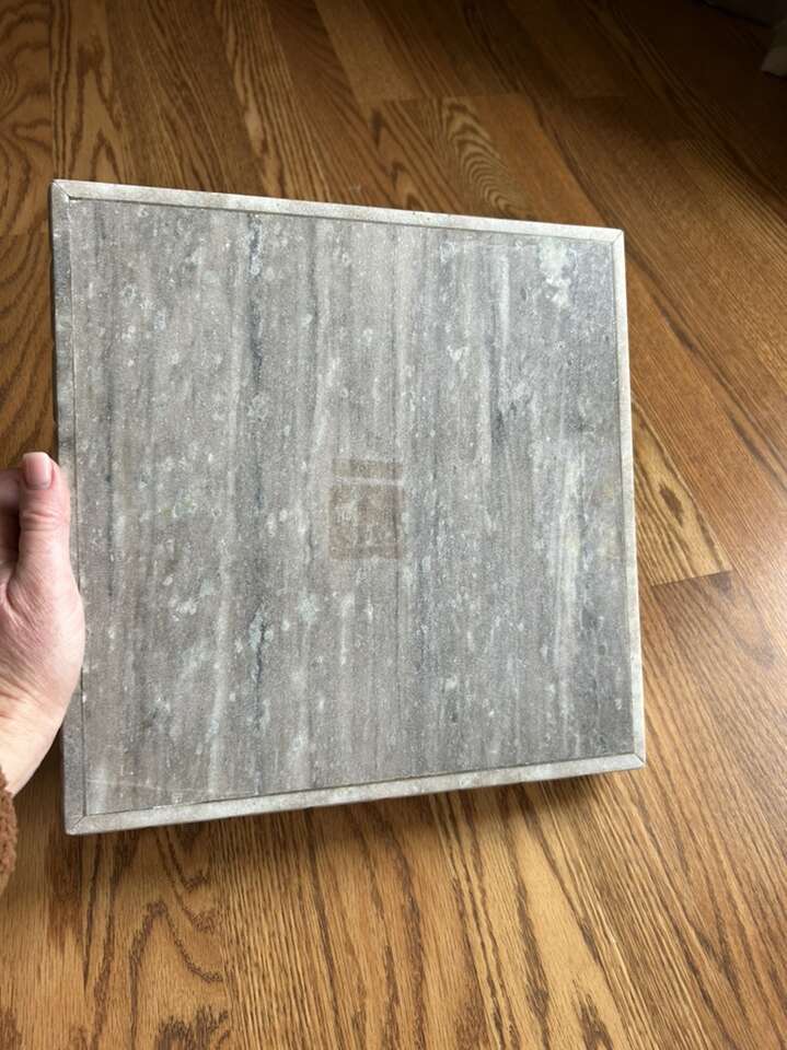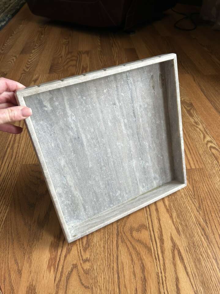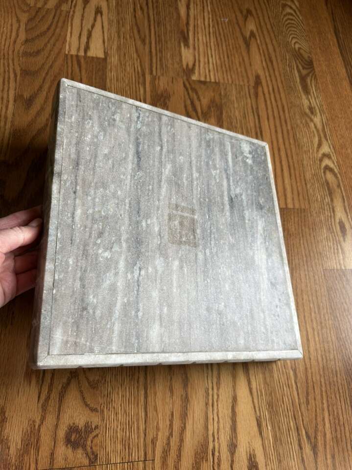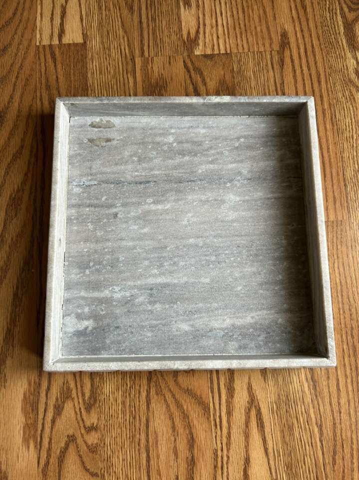 Venmomarble stone square decorative tray measures 12“ x 12“. Hearth and hand magnolia. Perfect for any space. Helps to highlight our accent items on a table desk or a bookshelf. Clean. Minor residue from Price sticker that could easily be removed. Smoke free environment. No flaws or defects. Solid piece of furniture. Has gray light, gray, white and brown fleck. Smooth finish. Cash or Venmo porch pick up from Alpine.