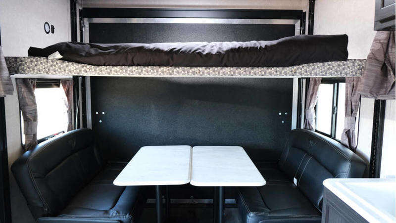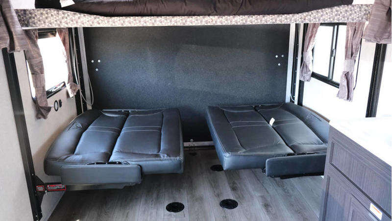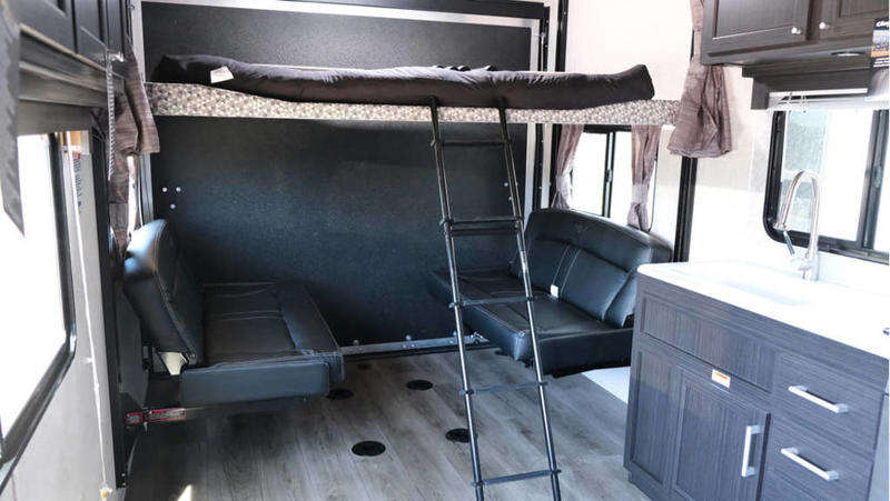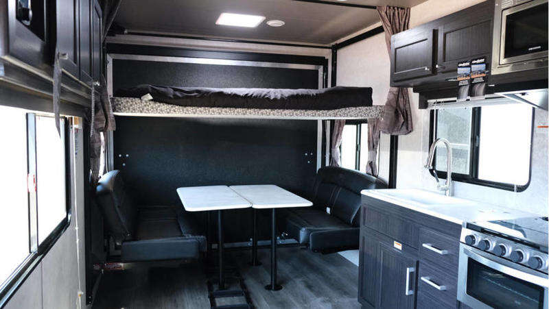 Whether you're headed to the mountains, desert, or lakeside, this toy hauler RV has everything you need for the perfect camping and off-road experience.