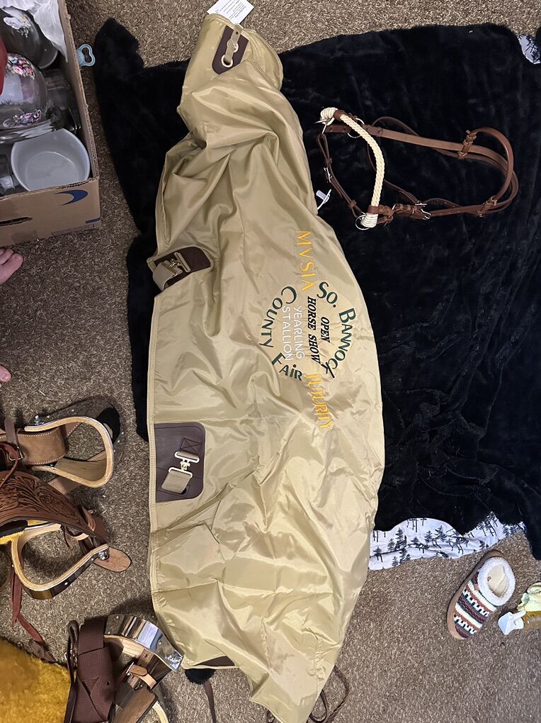 PayPalI have so much tack for sale. Tie downs, headstalls, reins, bridles, saddle pads, blankets, hay bags, farrier chaps, saddles, grooming supplies, halters, lead ropes, sports boots and more! Just let me know what you’re looking for and if I don’t have it I can find it. Happy to ship or you can come look at it all and we can make a deal on whatever you’re interested in!