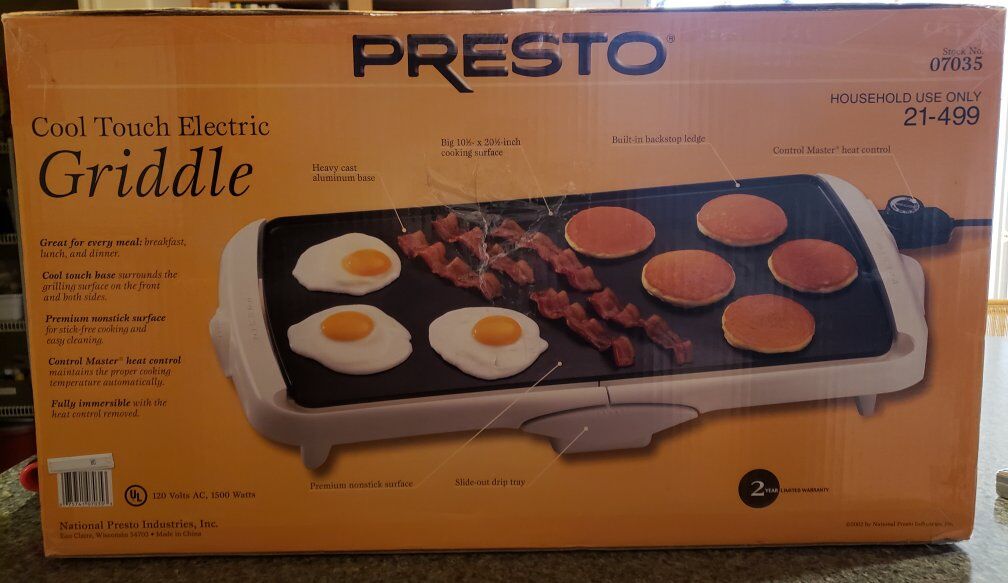 Brand new in box; heated plate portion is about 20.5"×10.5"; stored in smoke-free environment. Cash only, please. Thanks!