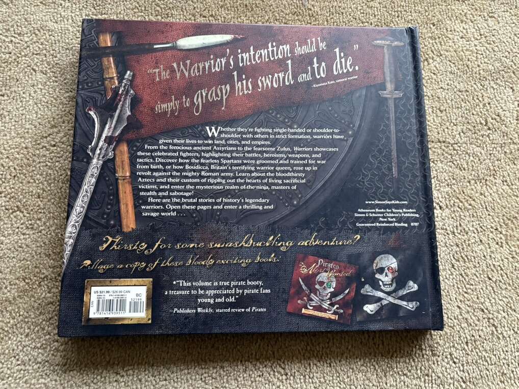 Warriors: All the Truth, Tactics, and Triumphs of History's Greatest Fighters. Oversized novelty book full of pictures, maps, pop-ups, letters, and fold-outs about gladiators, Celts, Ninjas, and more warriors from history. Athenum, 2007. Excellent condition. Text only. Cash or Venmo.