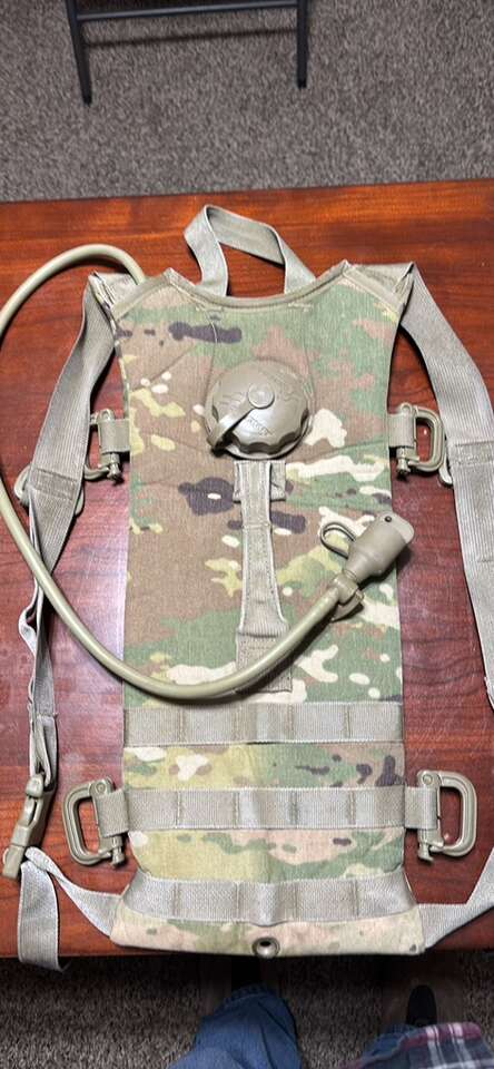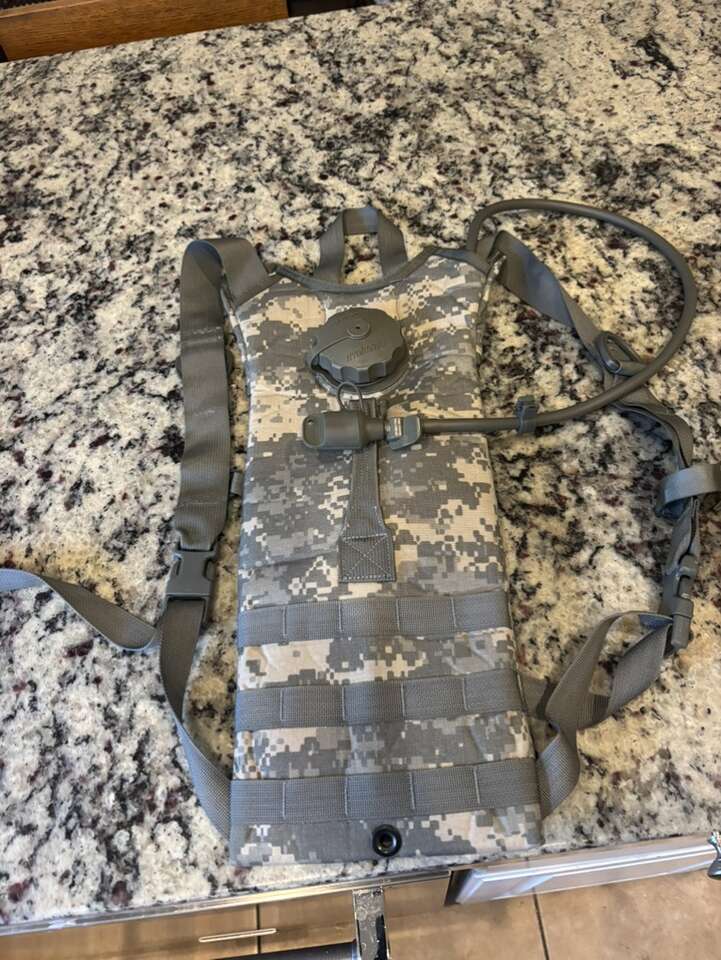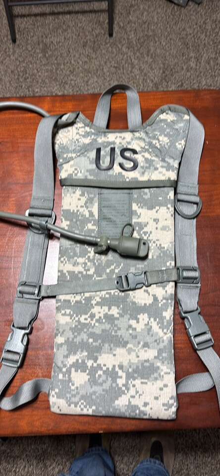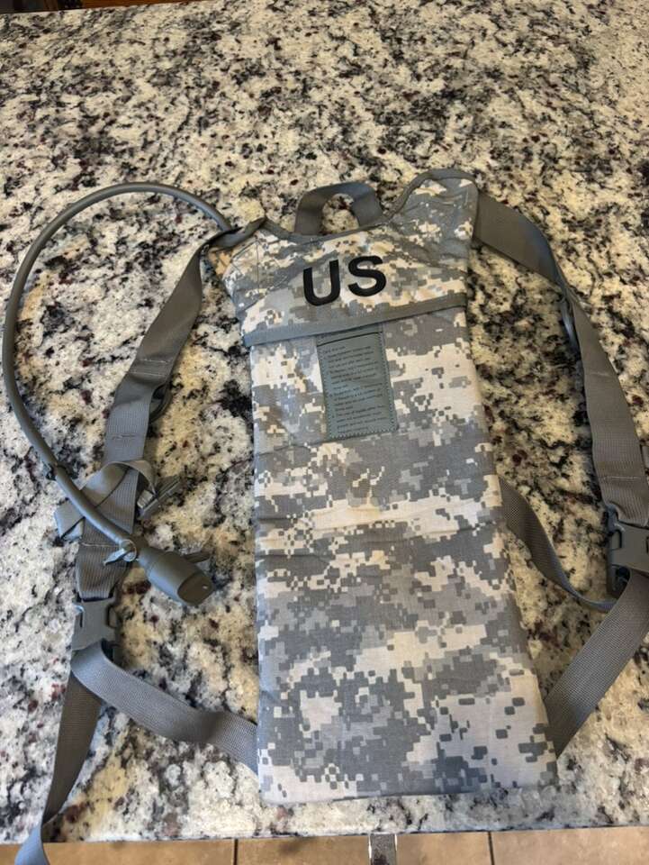 Hydration packs are designed to transport water and make drinking convenient and efficient during outdoor activities like biking, hiking, camping, and running. No need to stop or even slow down to take a sip of water; simply grab the drinking tube that’s connected to the included water reservoir and take a drink! These genuine GI US military-issued MOLLE II hydration packs are made to the demanding and quality specs that the military is known for. The hydration carrier holds the 100 oz bladder, and is made from 500 denier nylon water-resistant fabric. The carrier material is laminated to a single cell foam backing to insulate and maintain water temperature. It also features quick slide release buckles on both the shoulder and chest straps, adjustable chest and shoulder straps, and a carrying handle at the top and one in the center.