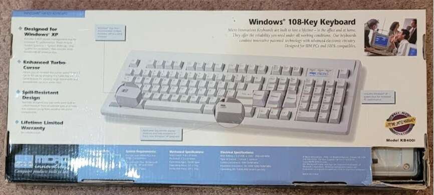 VenmoNew/Vintage 108-Key Windows Keyboard. The box is still sealed but the UPC was removed from the back.