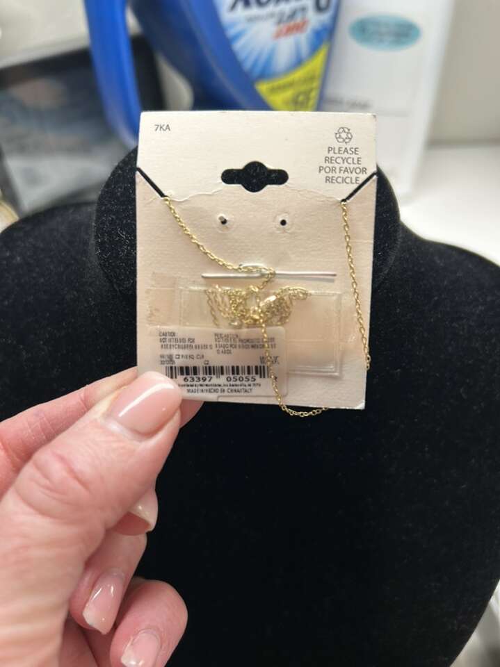 VenmoNew on the card sterling silver 18k yellow chain with square cut CZ stone. Chain measure 18” inches long. Bale and CZ stone measure 1/2” tall. Tarnish resistant. Clean smoke free home. Beautiful classic piece of jewelry. Cash or Venmo. Porch pickup from Alpine.