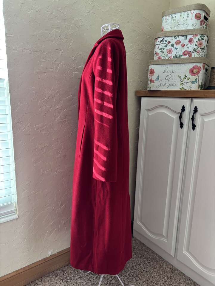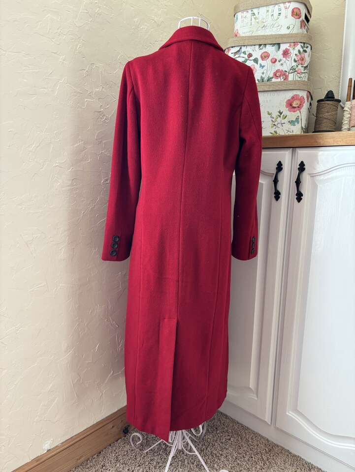 Features: ️ Rich red color – bold and timeless ️ Wool blend – warm and high-quality ️ Calf-length – great for layering ️ Classic button-up closure ️ Two functional pockets
