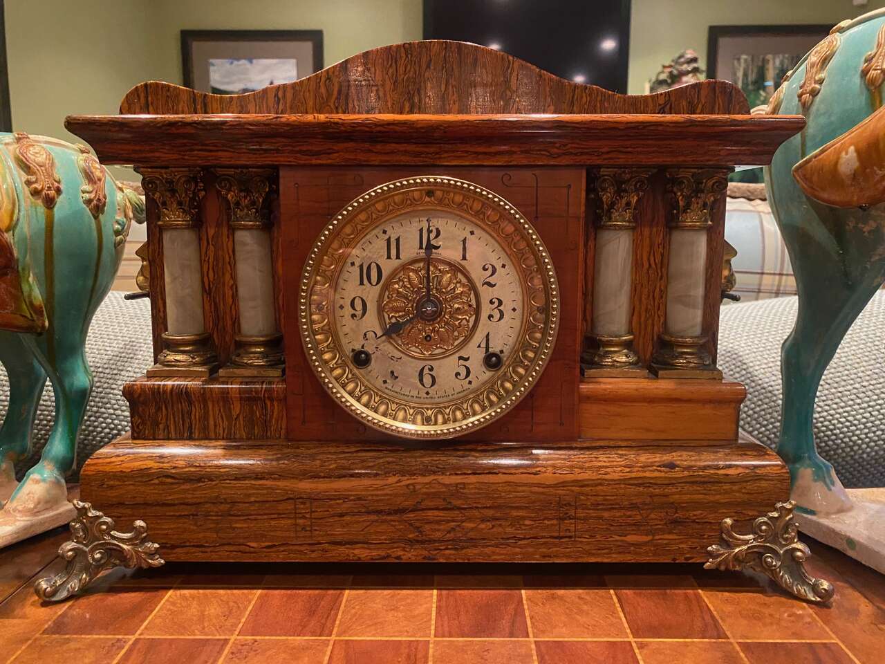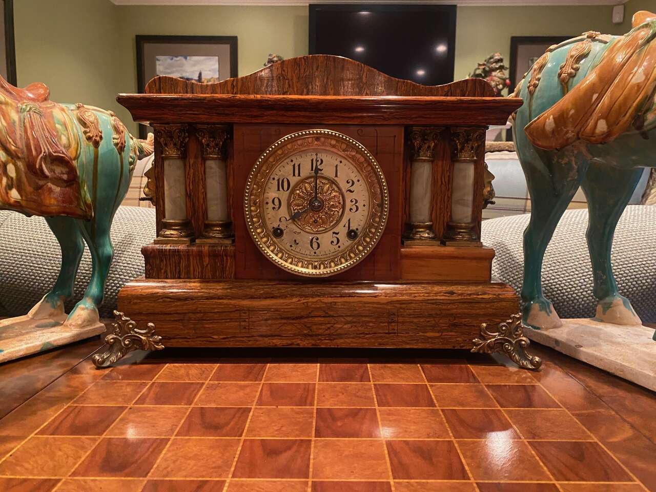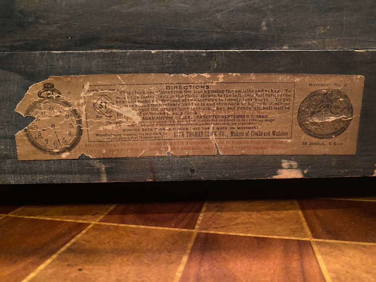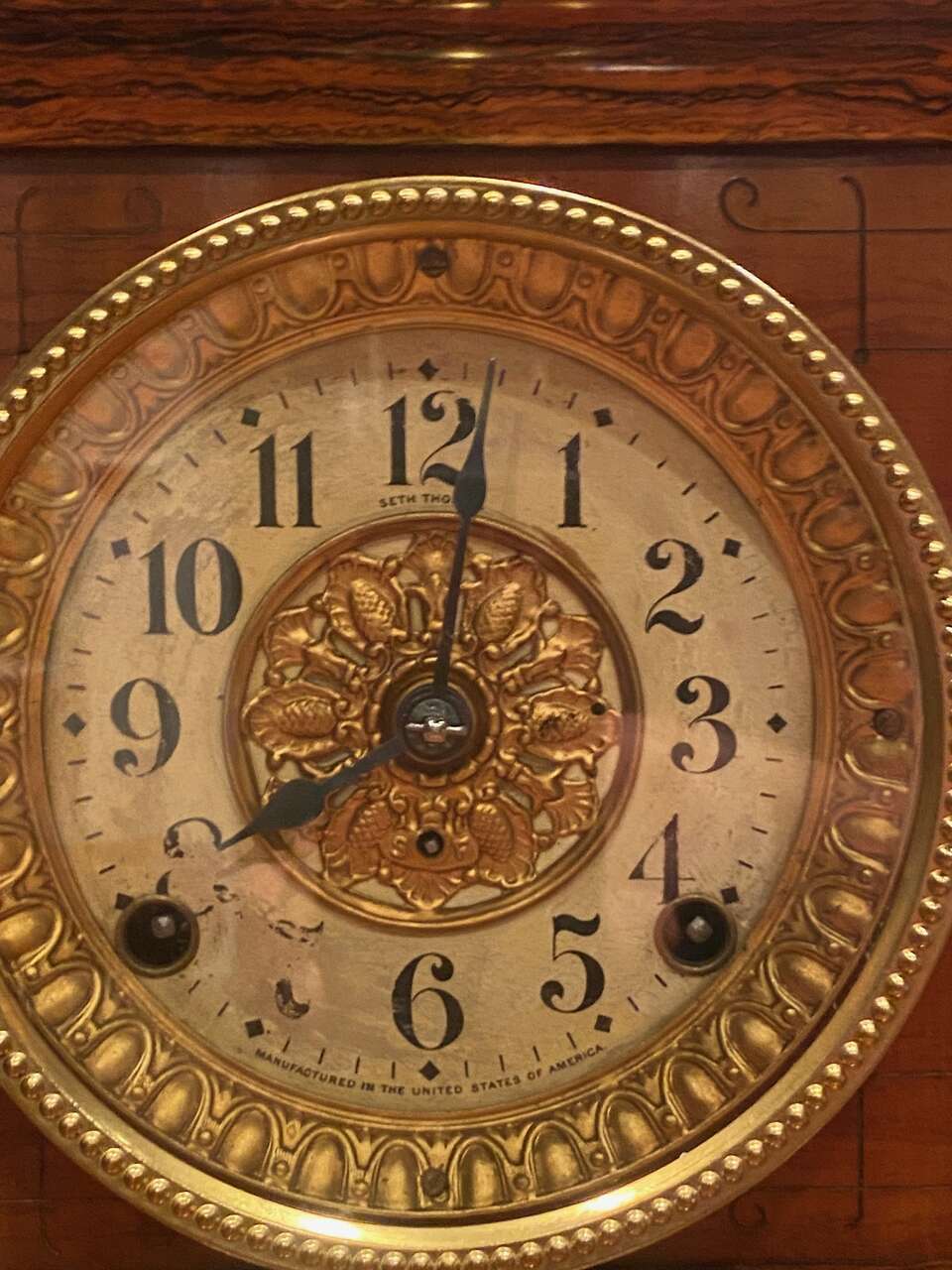 Restored and serviced by Mt. Olympus clocks. Beautiful Seth Thomas Adamantine clock from the 1880's. Runs well Strikes bell on the hour and small chime on half hour. Keeps fairly accurate time. Unique beautiful piece. Service of clock alone cost over $750. You will not find one that is this meticuously cared for. In great condition for a clock over 145 years old!