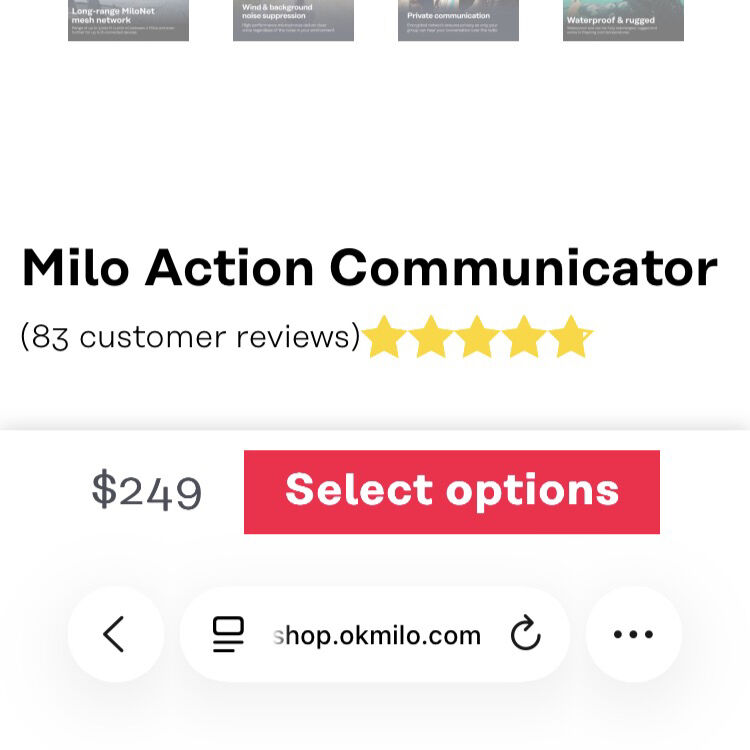 Sealed Box - NEW REI.COM $225. Milo Action Communicator Black Model M01