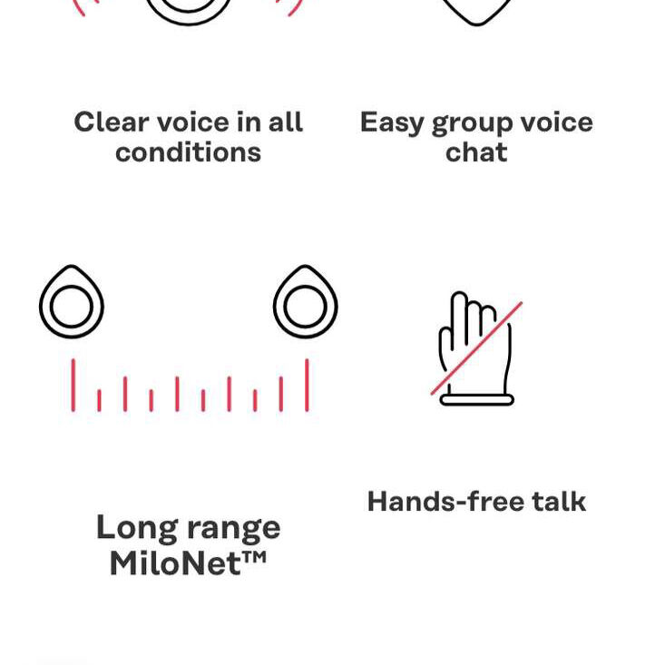 Reliable MiloNet™ Mesh Network Milos™ create their own mesh network, so you don’t need Wi-Fi or a phone signal. The range between two Milos™ is 600 m (2000 feet) depending on the terrain. The MiloNet™ mesh network can extend that range when your group of 3 or more spreads out.