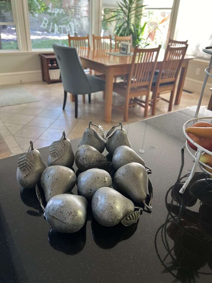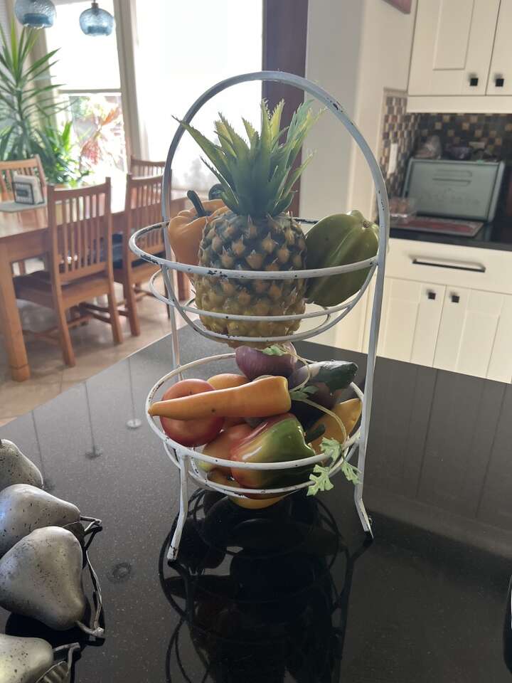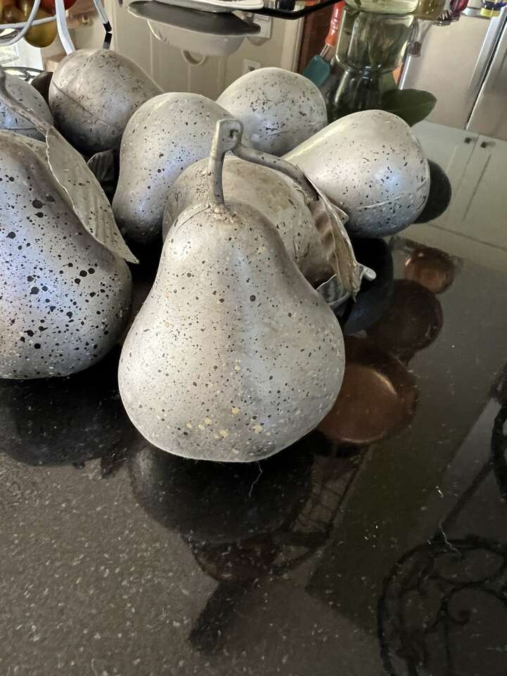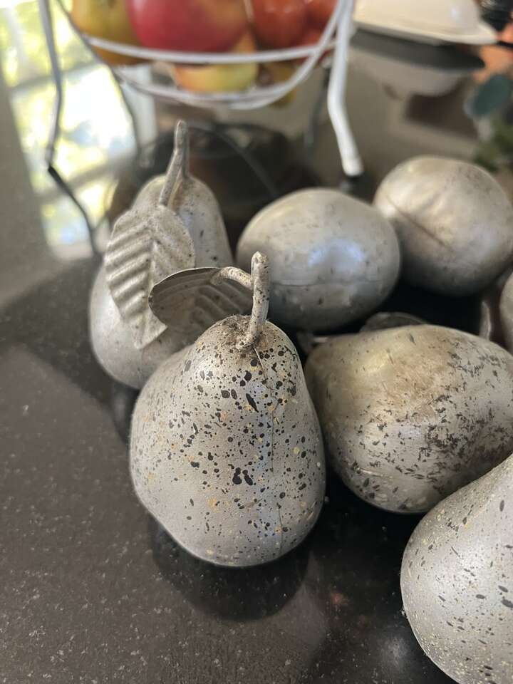 White display- 10 Plastic fruit- 10 Iron display- 10 Pear aluminum fruit- 10