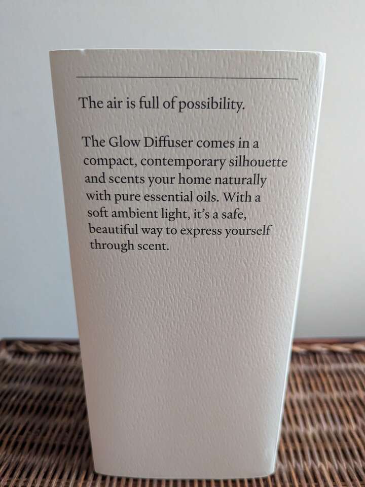 The Glow Diffuser from Vitruvi lights up, creating soft ambience while scenting your home naturally with 100% pure essential oils. The entire body lights up, giving off a soft glow, and also has two time settings (4-hour continuous and 8-hour intermittent) to scent your space on your schedule.