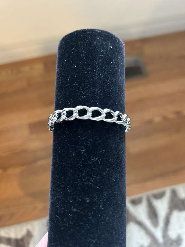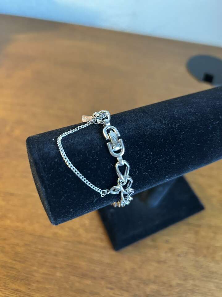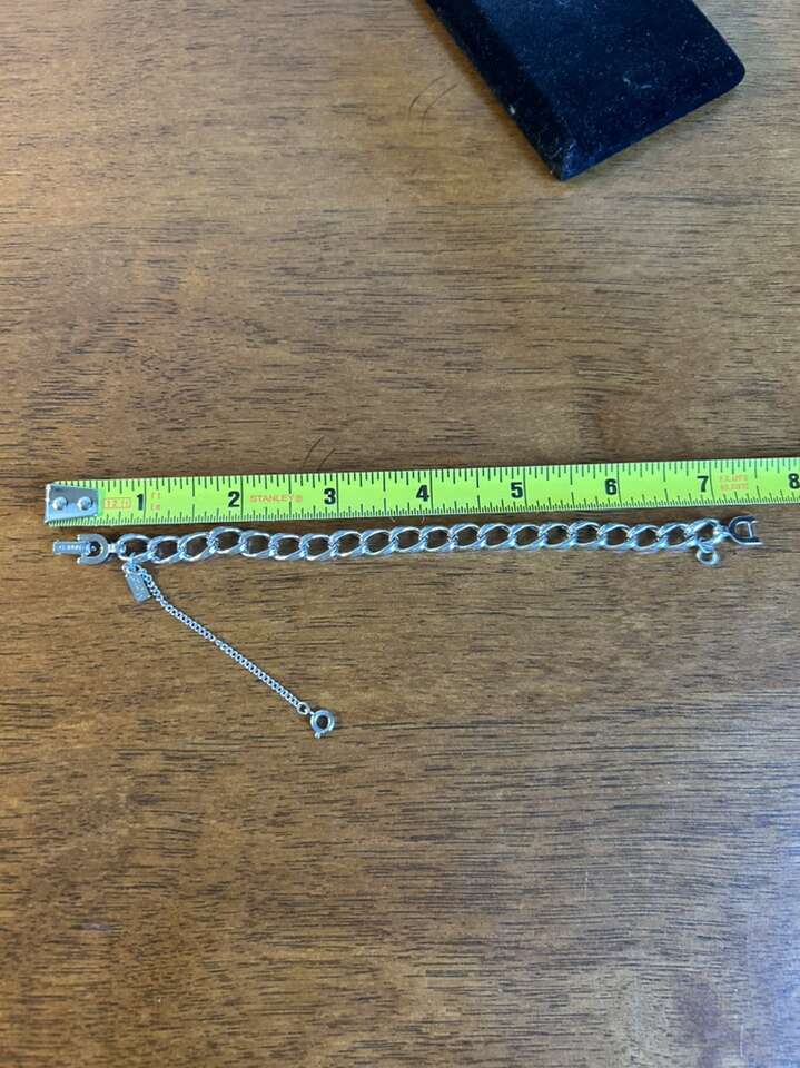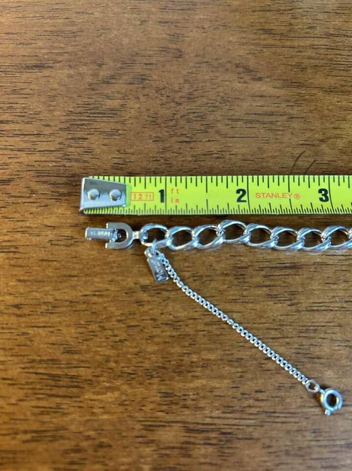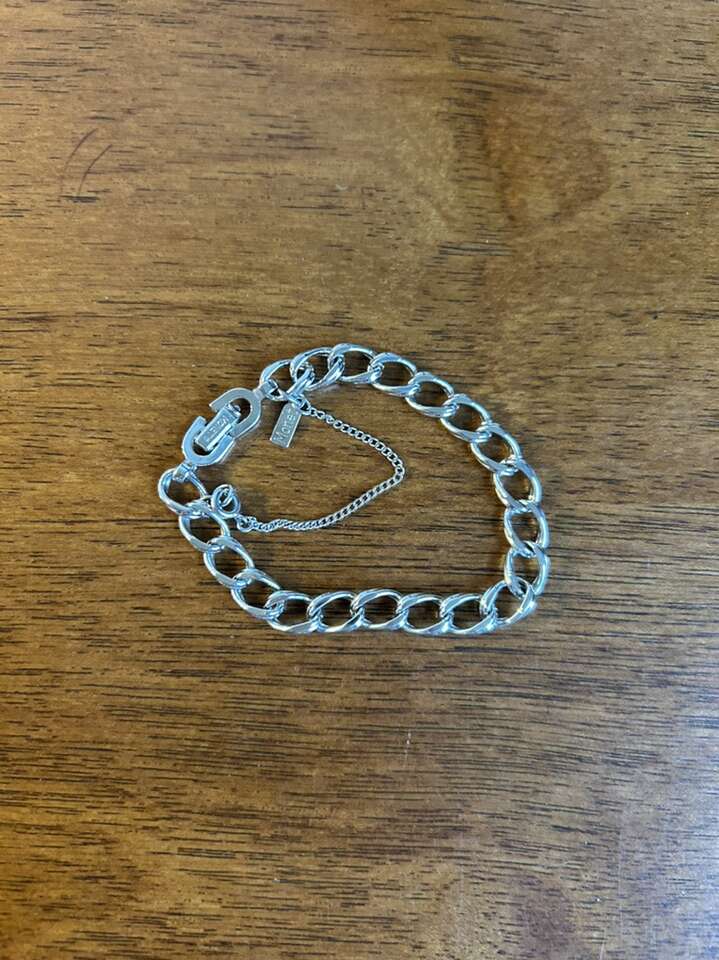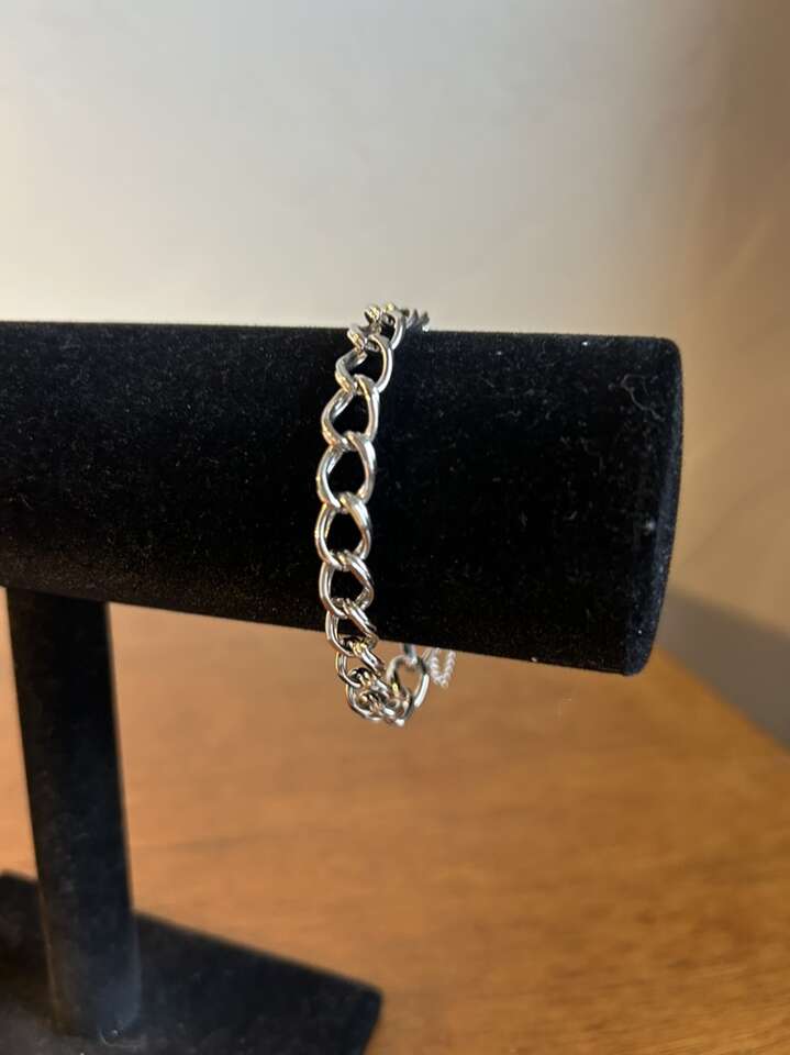 VenmoLike new Monet stamped 7” silver tone charm bracelet measuring 10 mm in width. Excellent condition. Includes safety chain with spring ring clasp. Easy on easy off. Clean smoke free home. Cash or Venmo. Porch pick up from Alpine.