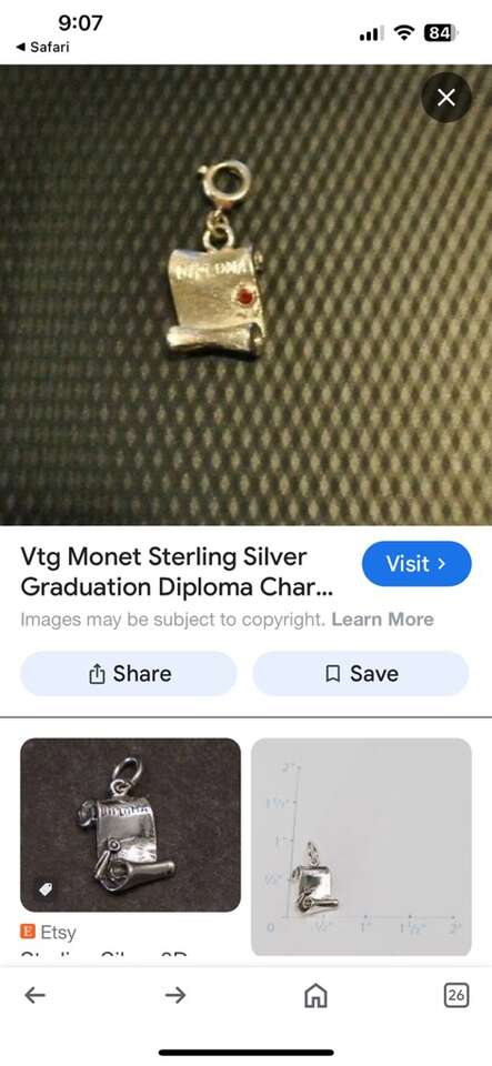 VenmoLike new condition silver tone Diploma charm with red stone. From Monet, stamped with Monet on the spring ring clasp. No flaws or defects. Cash or Venmo. About 3/4 of an inch tall. Clean smoke free home. Porch pickup from Alpine.