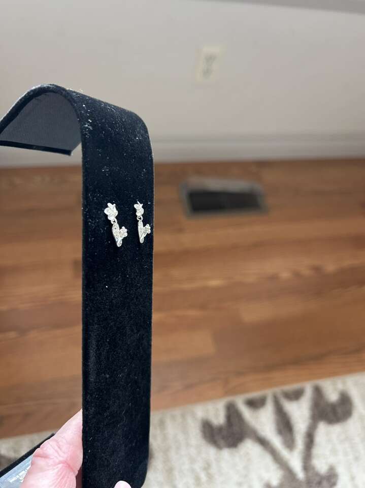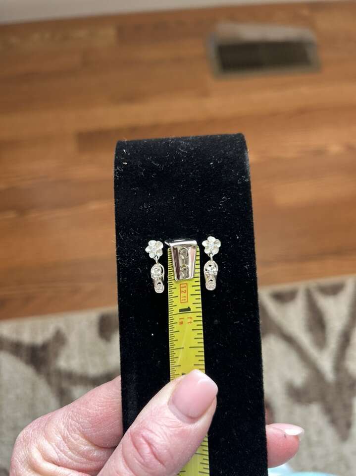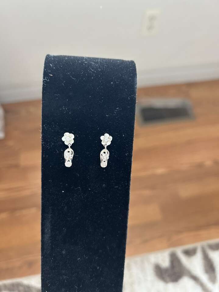 VenmoSterling silver stamped 925 on the earring and the back. Beautiful Hawaiian flower with cubic zirconium stone in the middle and dangling flip-flop with another flower and a stone on it. Clean smoke free home. These are an excellent like new condition. Porch pick up from Alpine. Cash or Venmo.