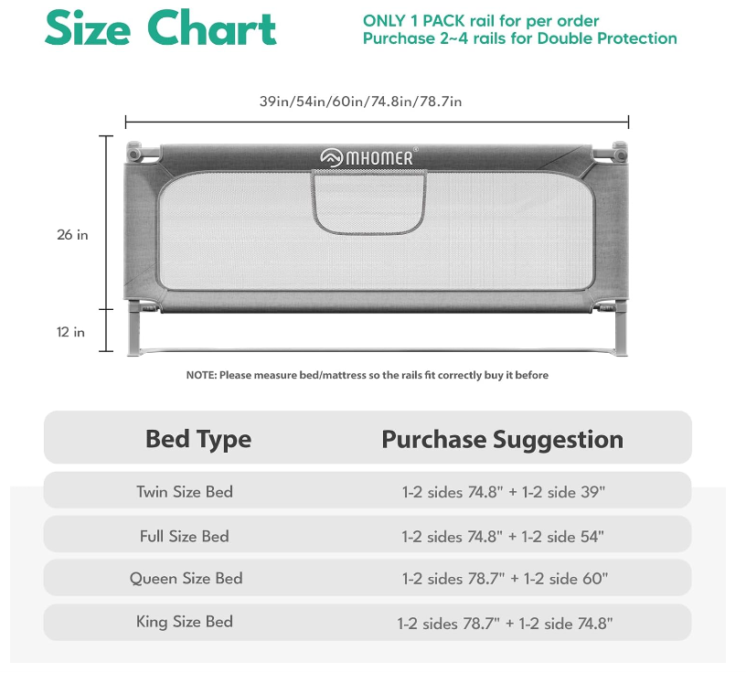 ZelleBed Rail for Toddlers, 2 Minutes Quick Assembly Foldable Bed Rails for Queen Size Bed, Bed Rail Guard with Steady U-Shape Base for Toddlers, Baby, Kids