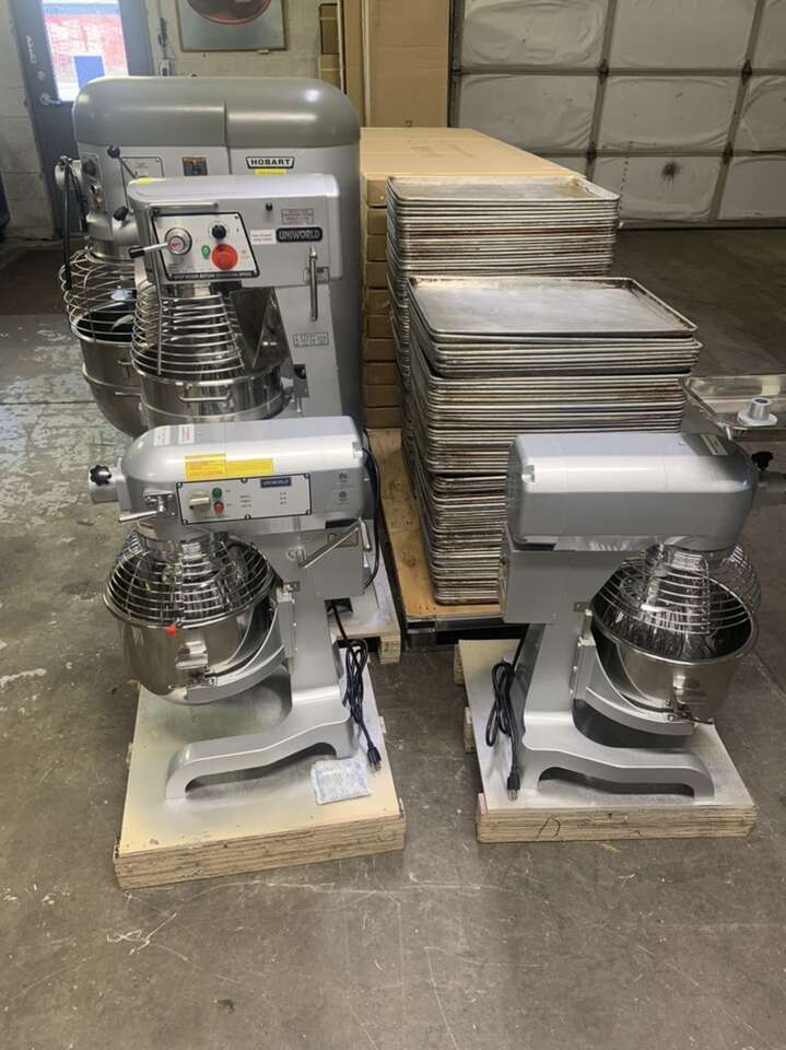 New and used bakery equipment , dough mixers , dough cutters , proofers , all size sinks , convection ovens , double deck ovens, pizza ovens bread slicer, coole ,freezer ,bakery racks ,food warmers proofers ,wall mount shelvings ,steam ketltes , mixer bowls, Stainless steel tables , bakery trays , and more